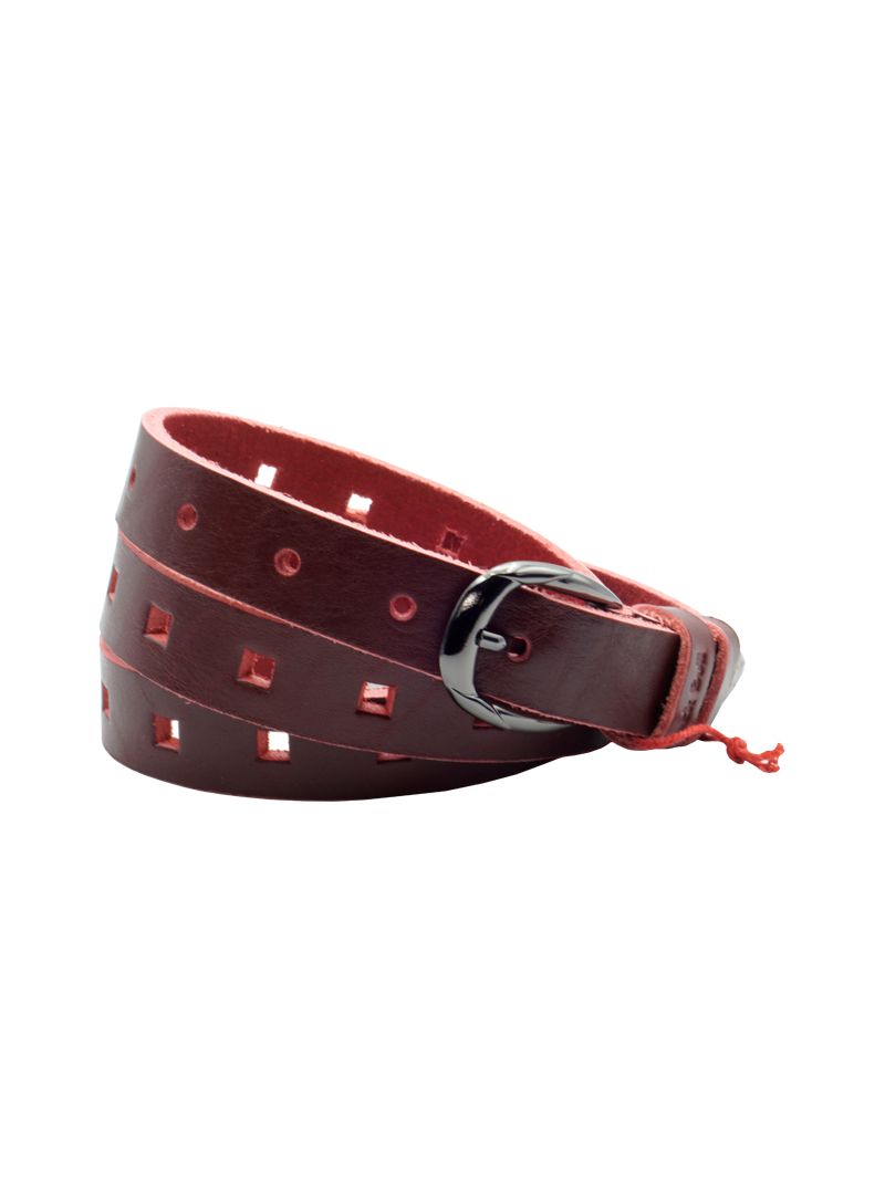 Женский ремень из итальянской натуральной кожи для джинсов бордового цвета, ширина 25 мм.