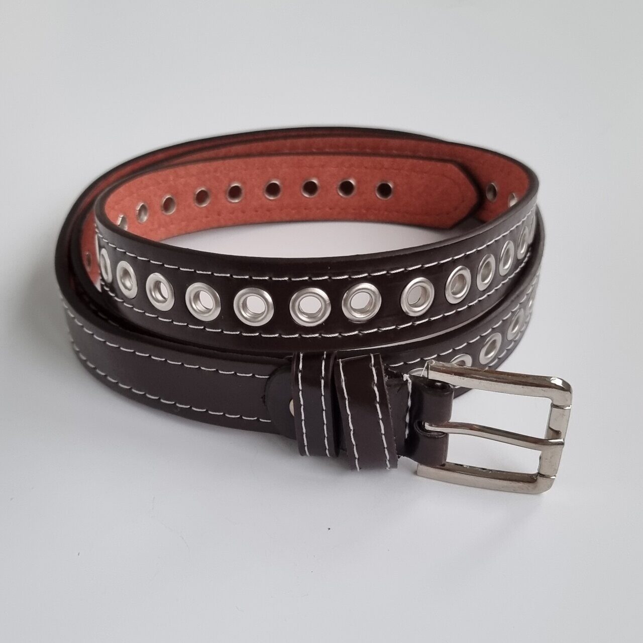 Описание Состав: эко кожа. Размер: ширина 2.4 см, длина с пряжкой 112 см. Цвет: темно коричневый. Вес: 75гр.