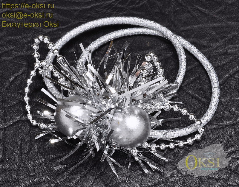 Яркая серебристая резинка для волос. Диаметр резинки 5 см.