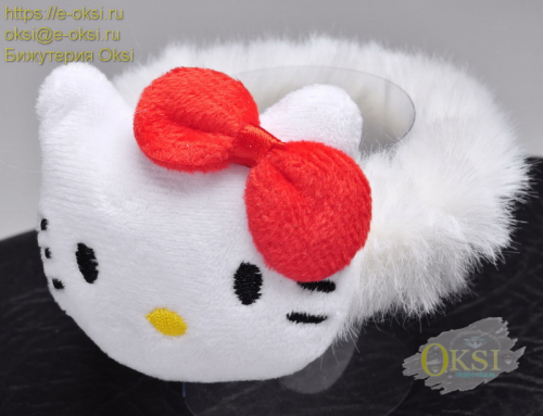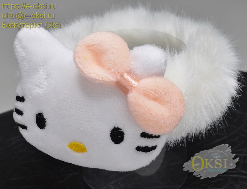 Очаровательная, крупная резинка для волос '' Котик с бантиком '' . Диаметр резинки 7 см. Размер котика 6 см х 3,5 см