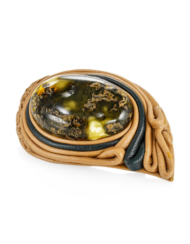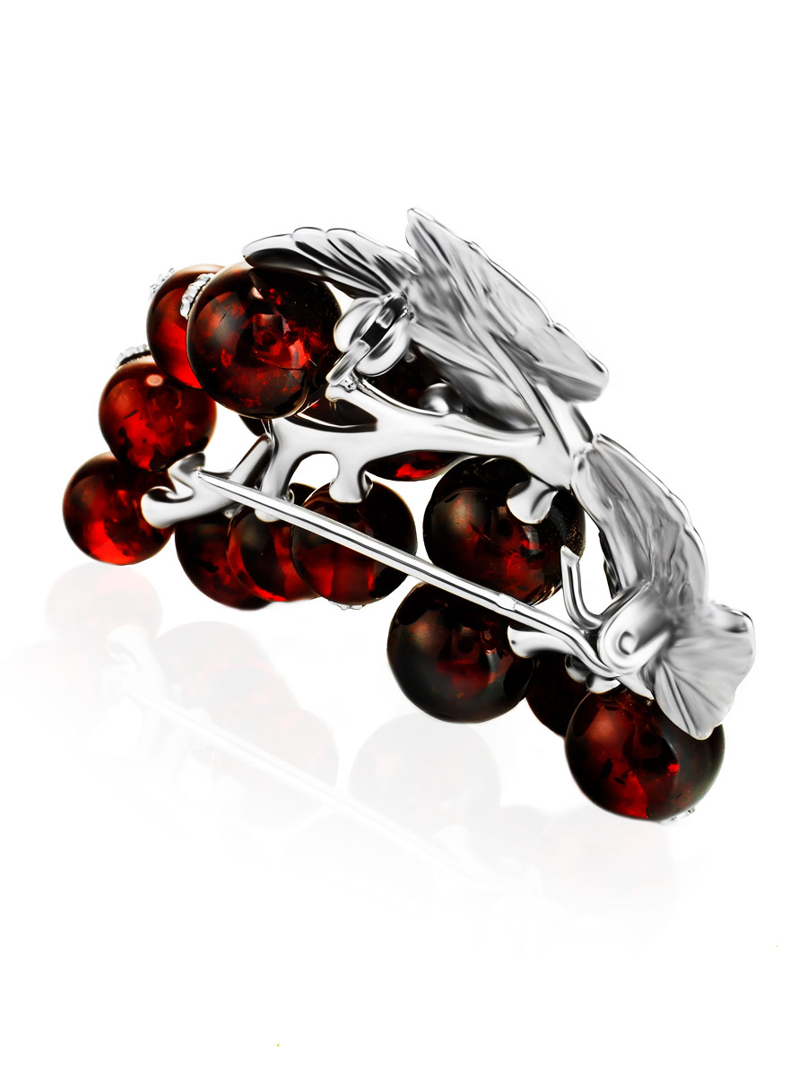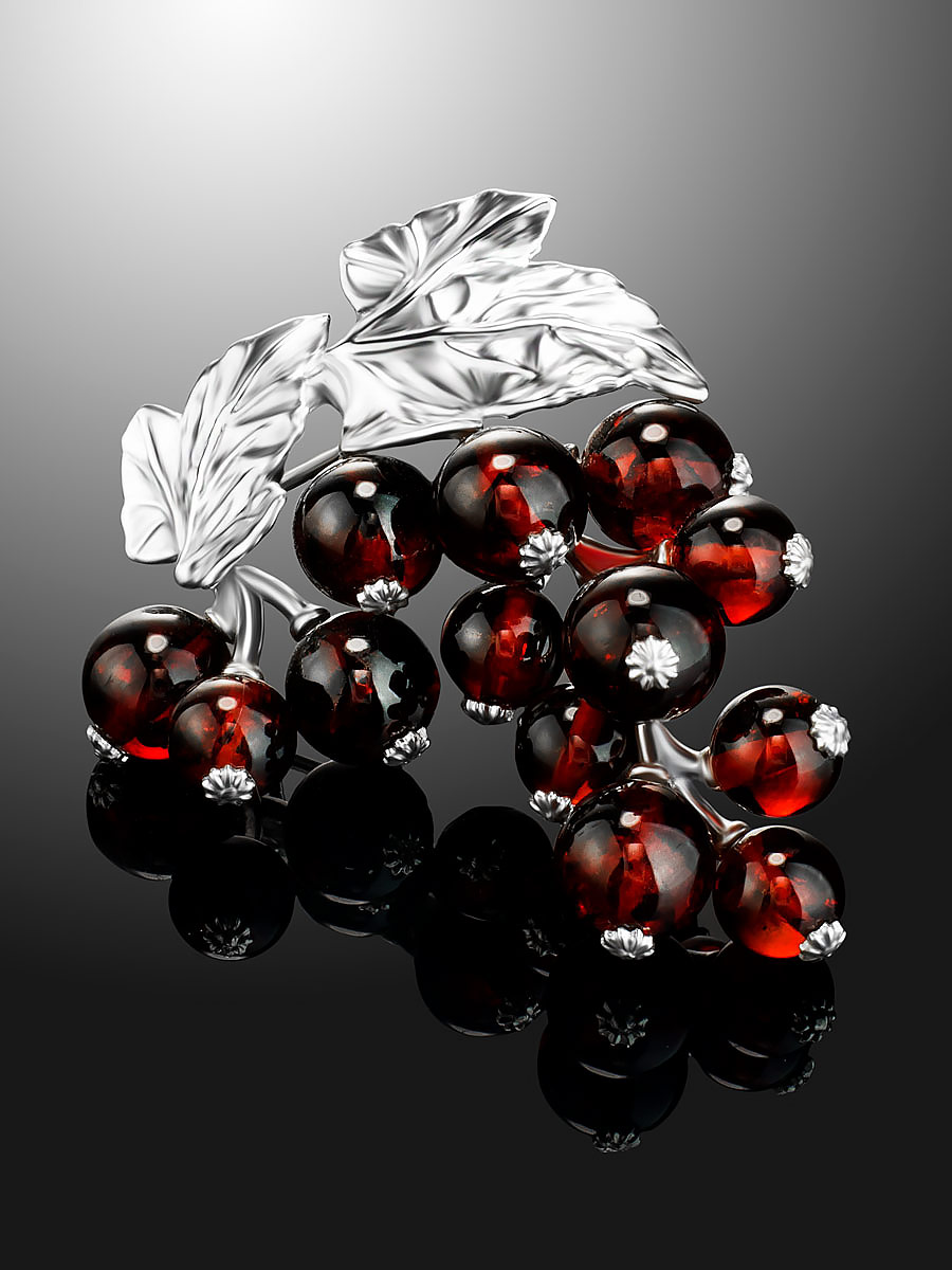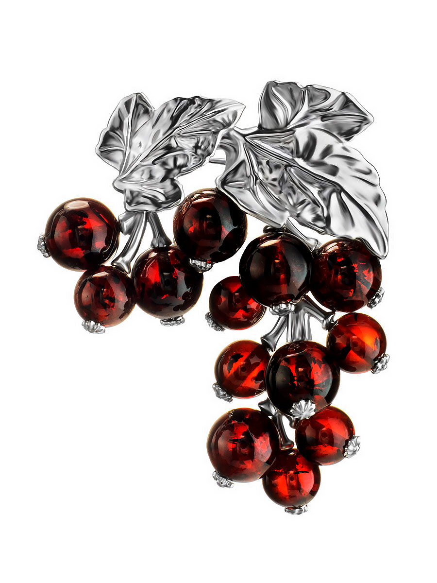 Роскошная брошь из натурального вишнёвого янтаря «Смородина»