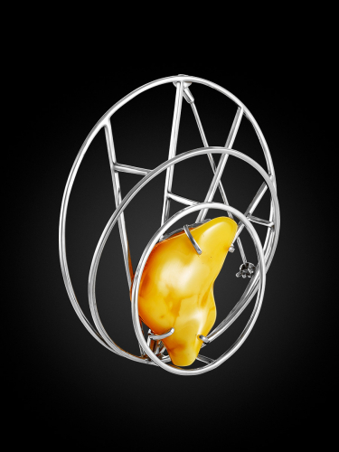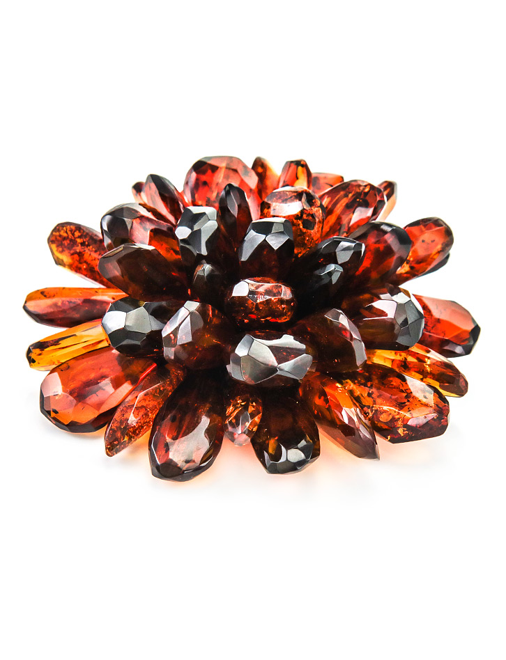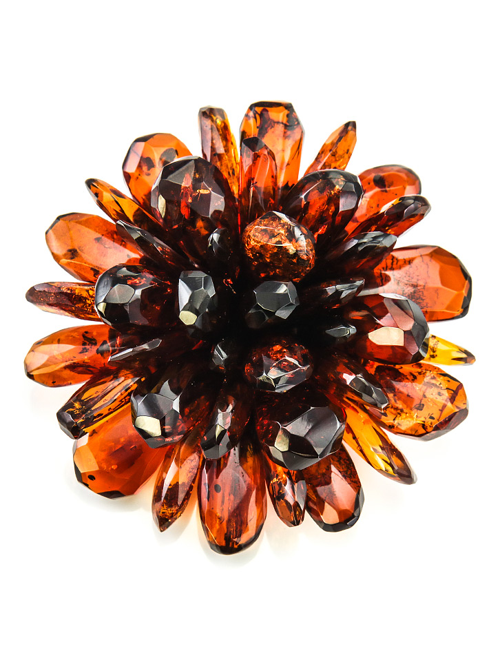 Роскошная брошь-кулон из натурального балтийского янтаря «Хризантема алмазная грань»