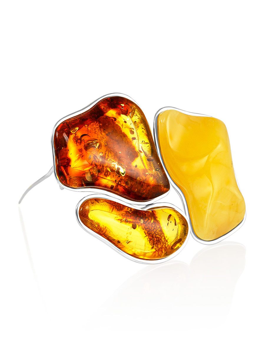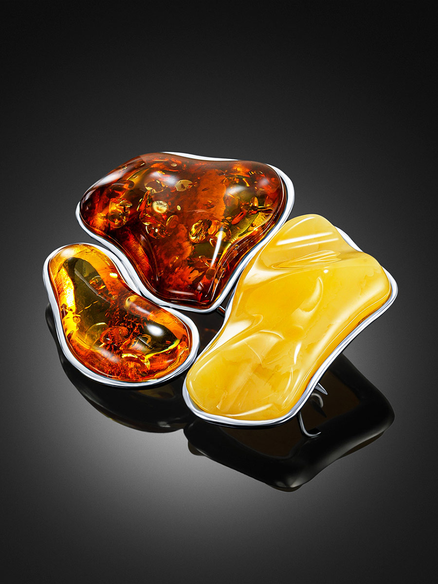 Роскошная брошь с янтарём разных оттенков Bella Terra