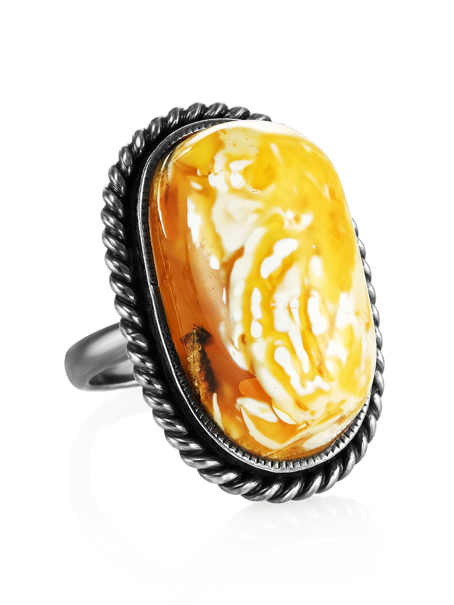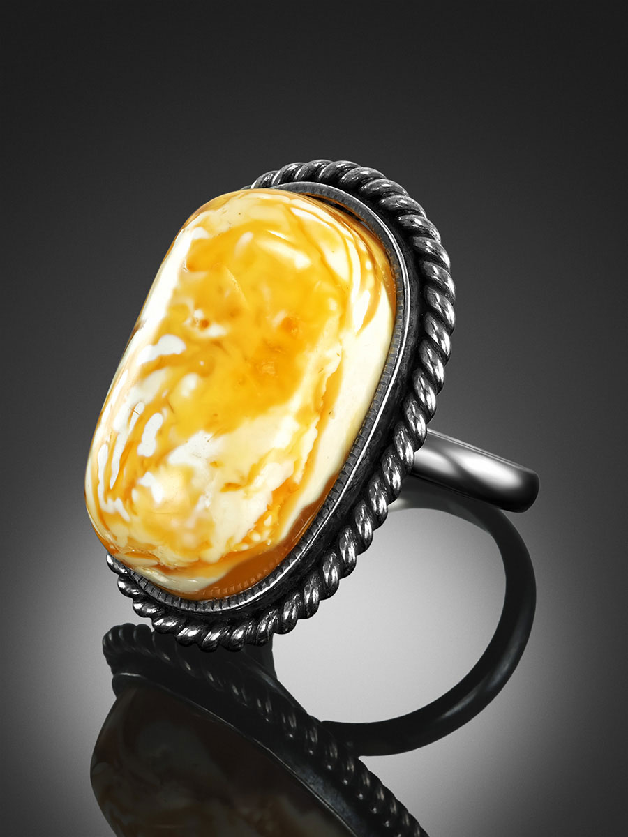 Роскошное кольцо из натурального пейзажного янтаря «Винтаж»