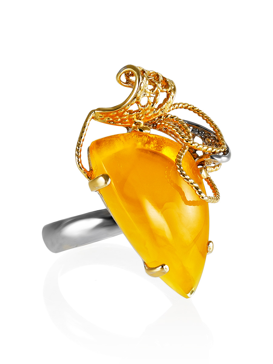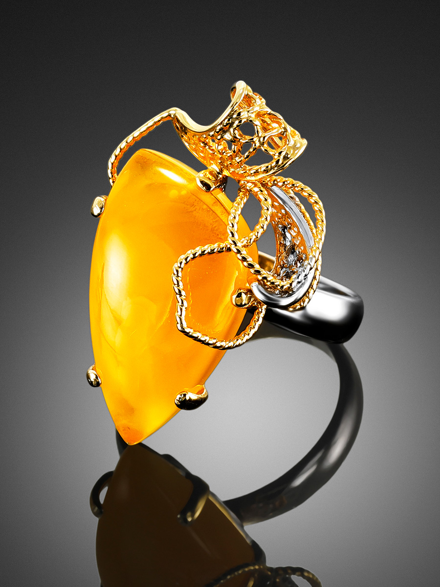Роскошное кольцо из натурального янтаря «Филигрань»