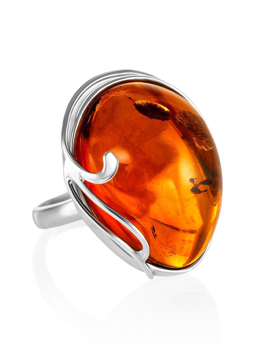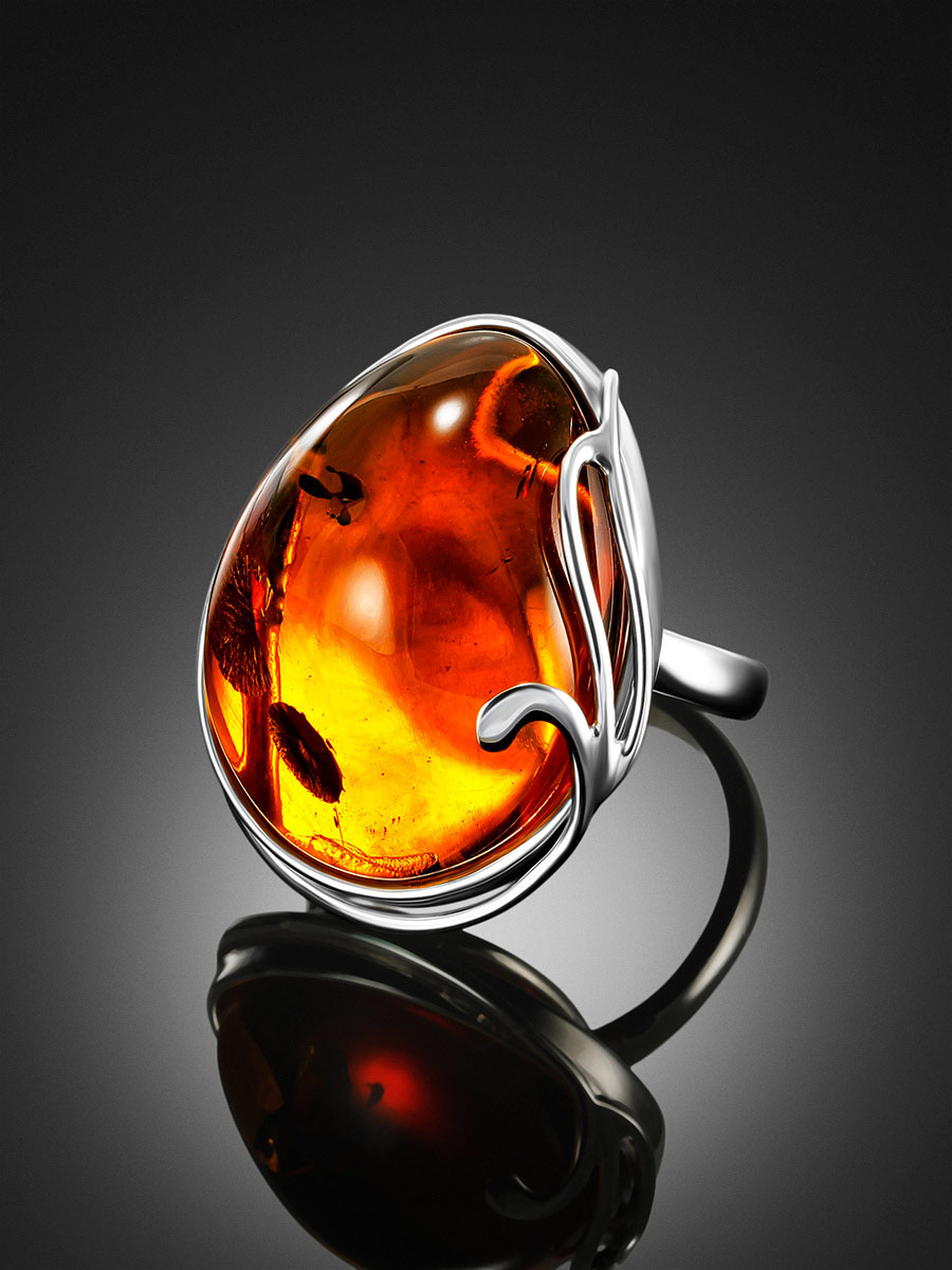 Роскошное кольцо из натурального янтаря коньячного цвета «Маньяна»