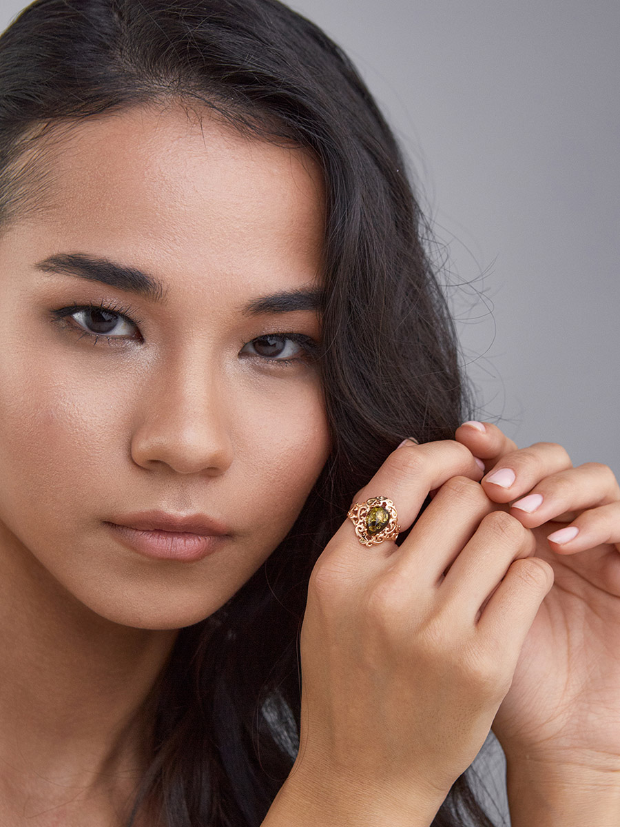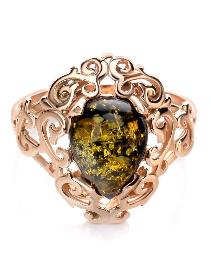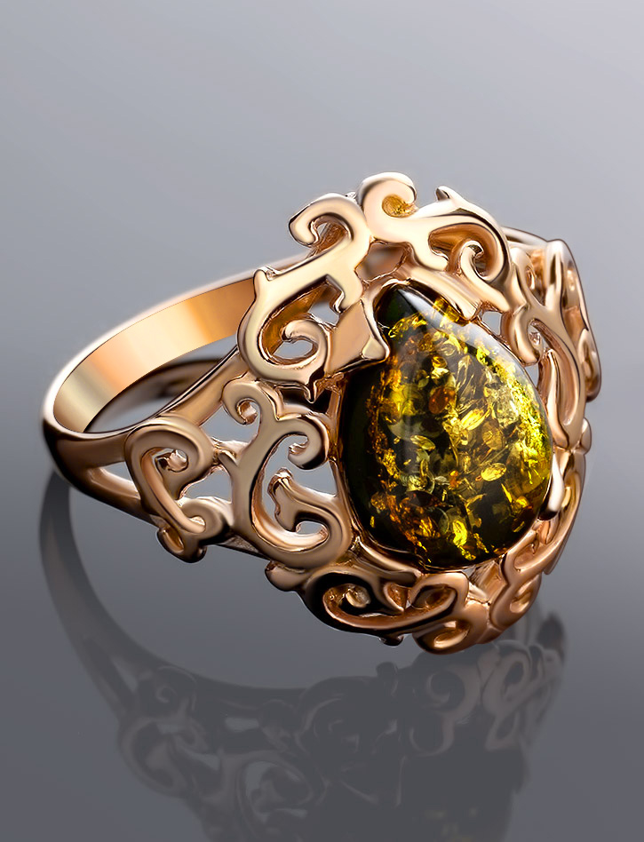 Роскошное кольцо из зелёного янтаря «Луксор»