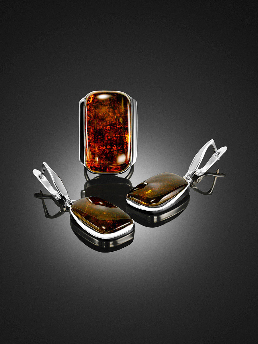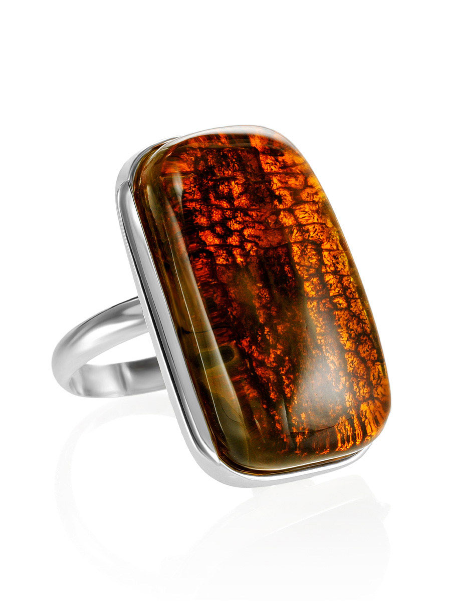 Роскошное кольцо «Лагуна» из натурального балтийского янтаря коньячного цвета с природной корочкой