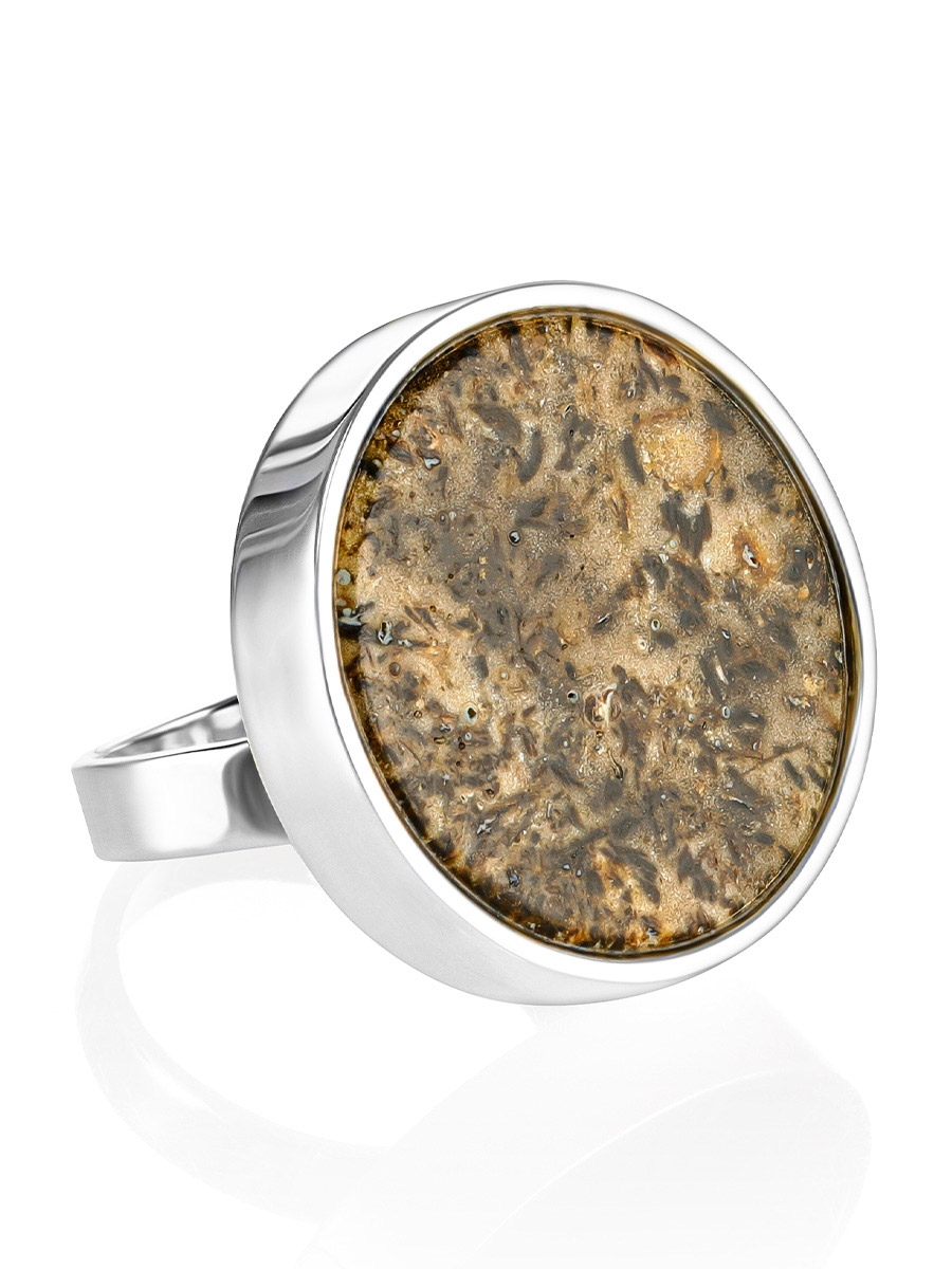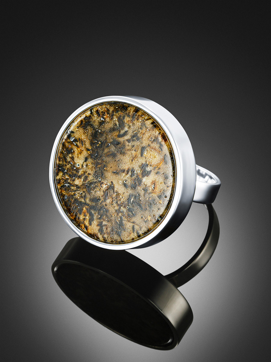 Роскошное объёмное кольцо с текстурным янтарём Palazzo