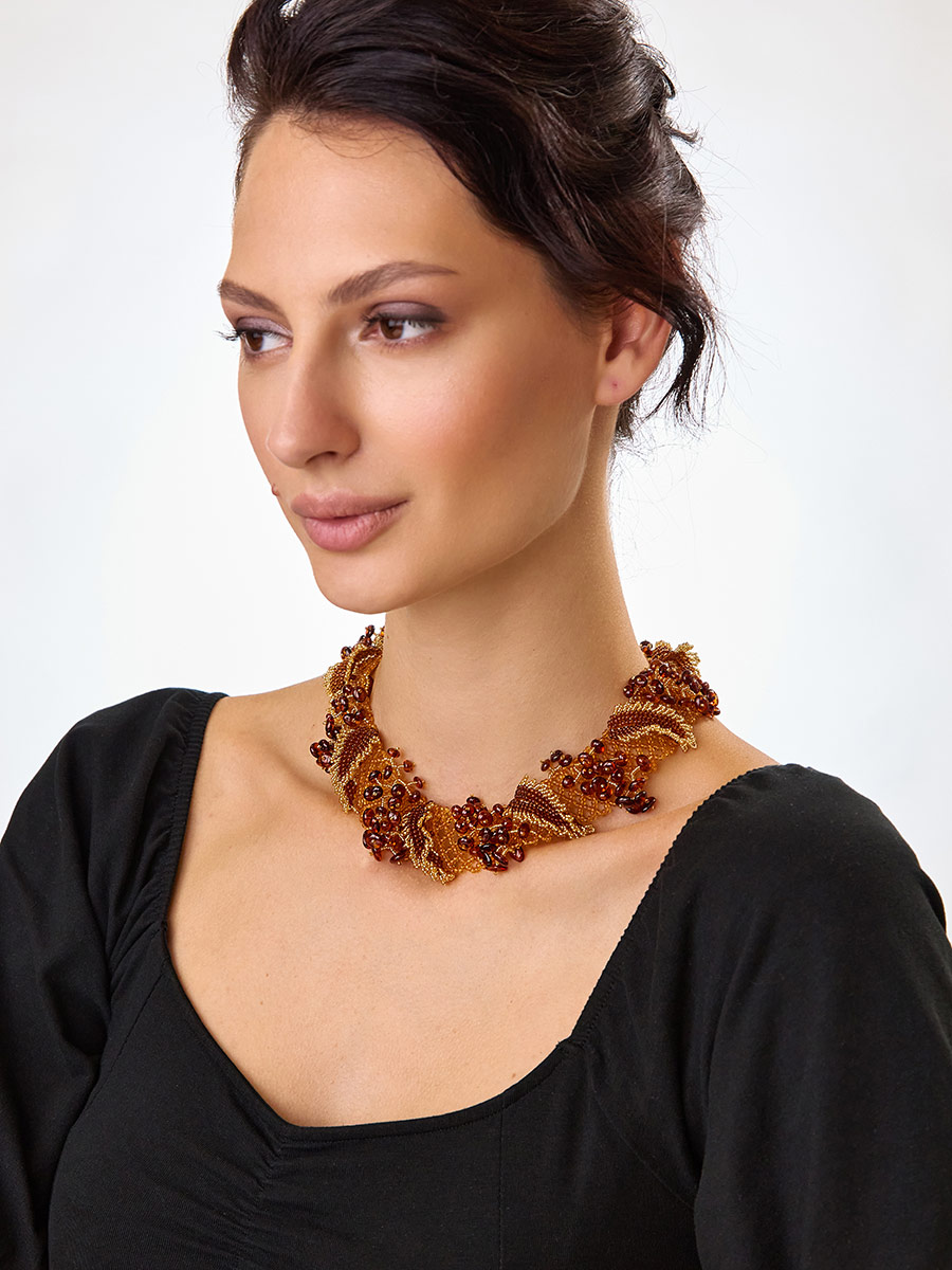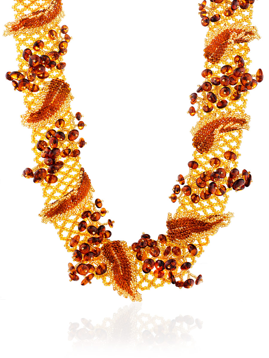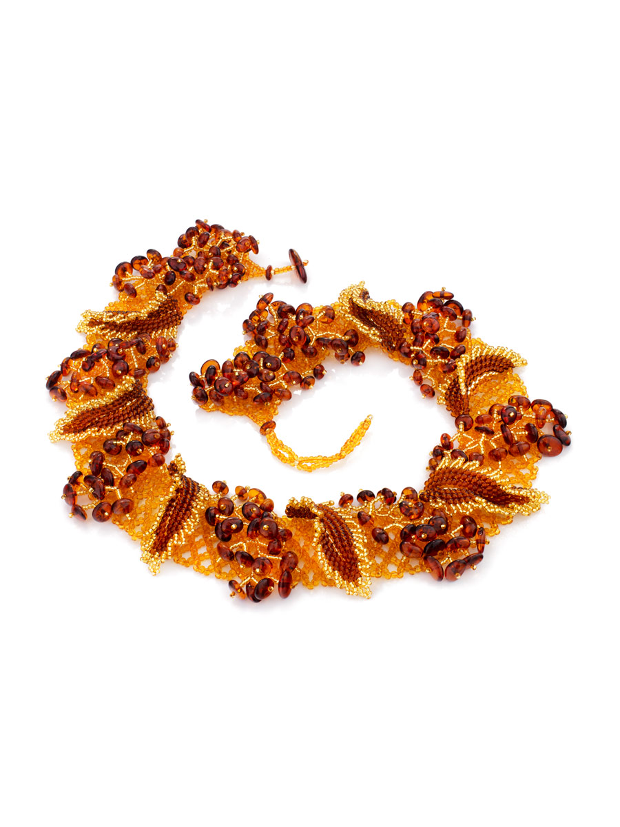 Роскошное объёмное ожерелье из янтаря «Лукоморье»