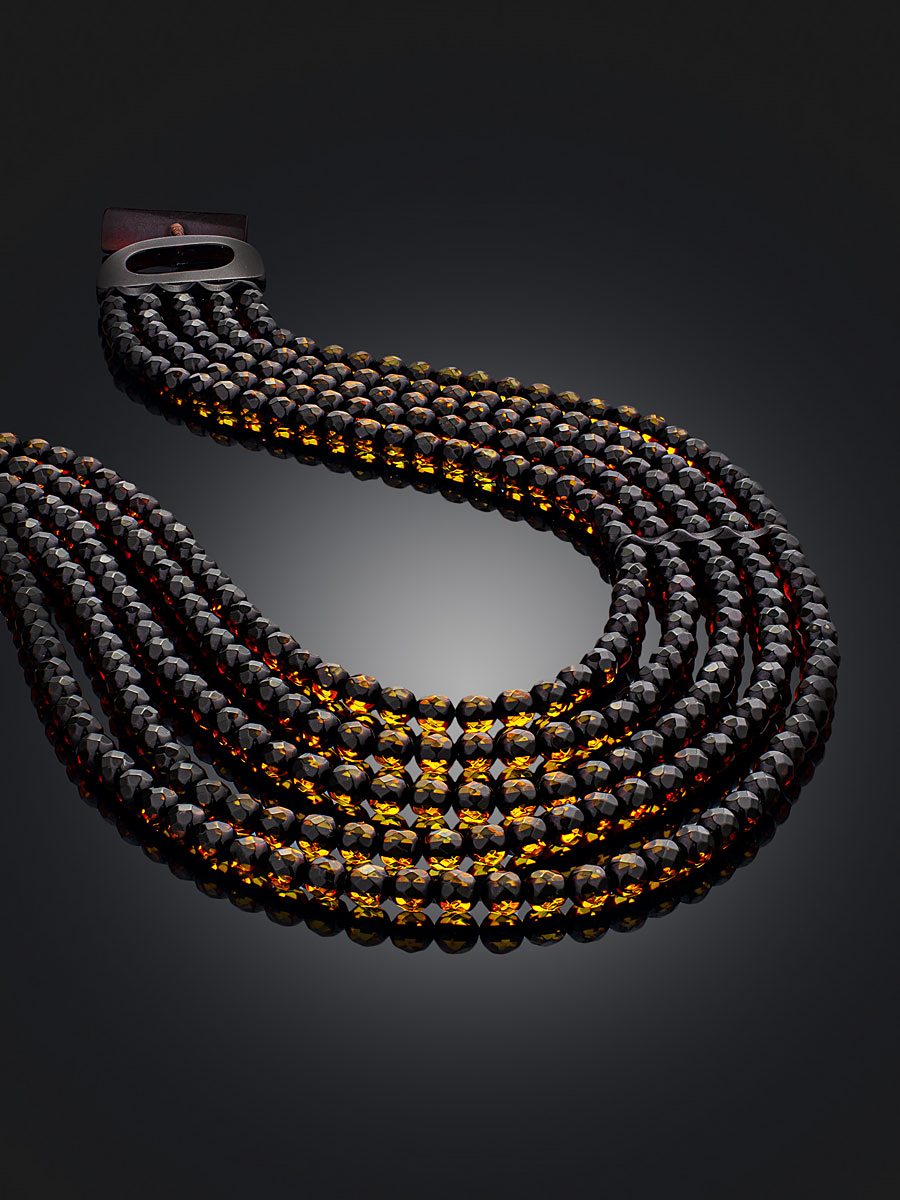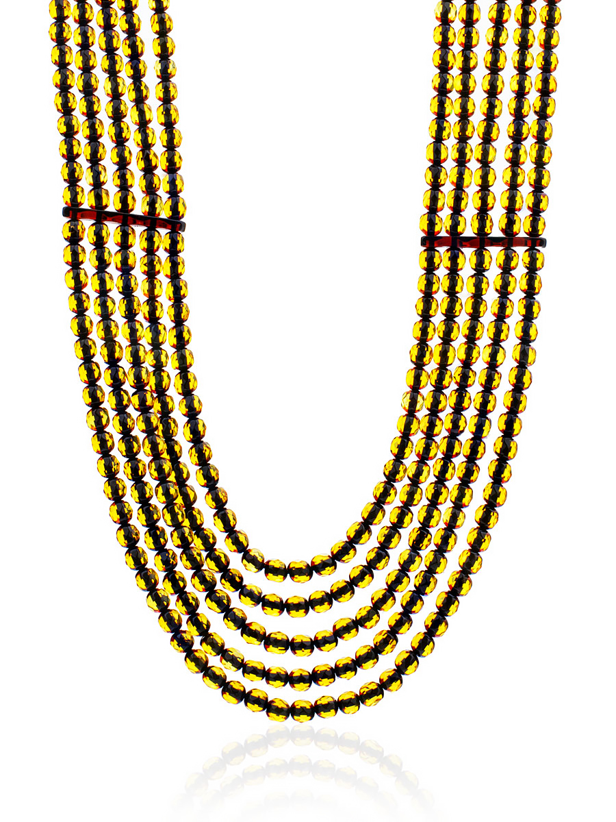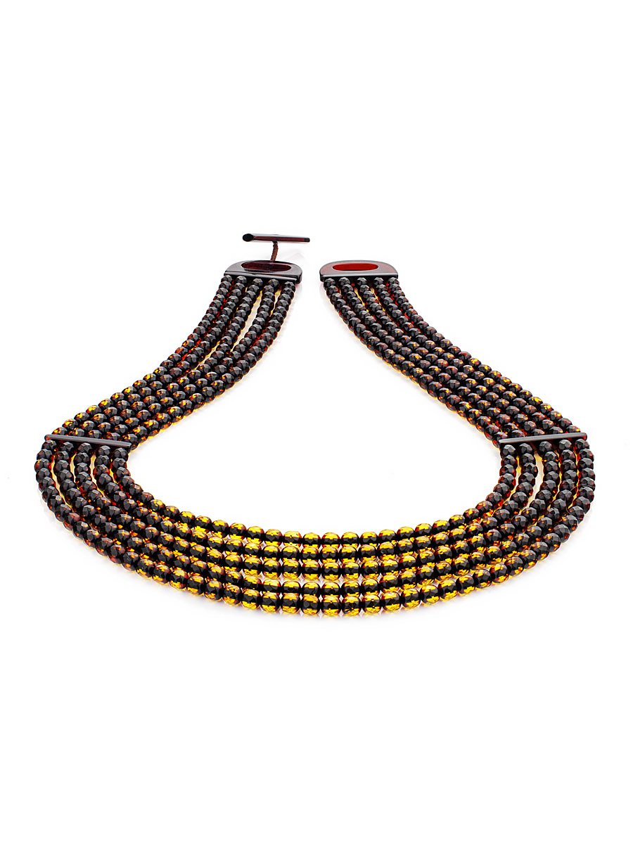 Роскошное пятирядное колье из натурального янтаря «Карамель алмазная переливающаяся»