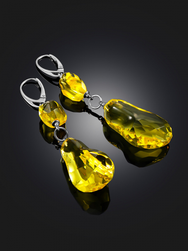 Роскошные крупные серьги из янтаря ручной огранки