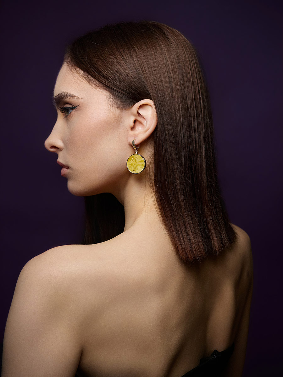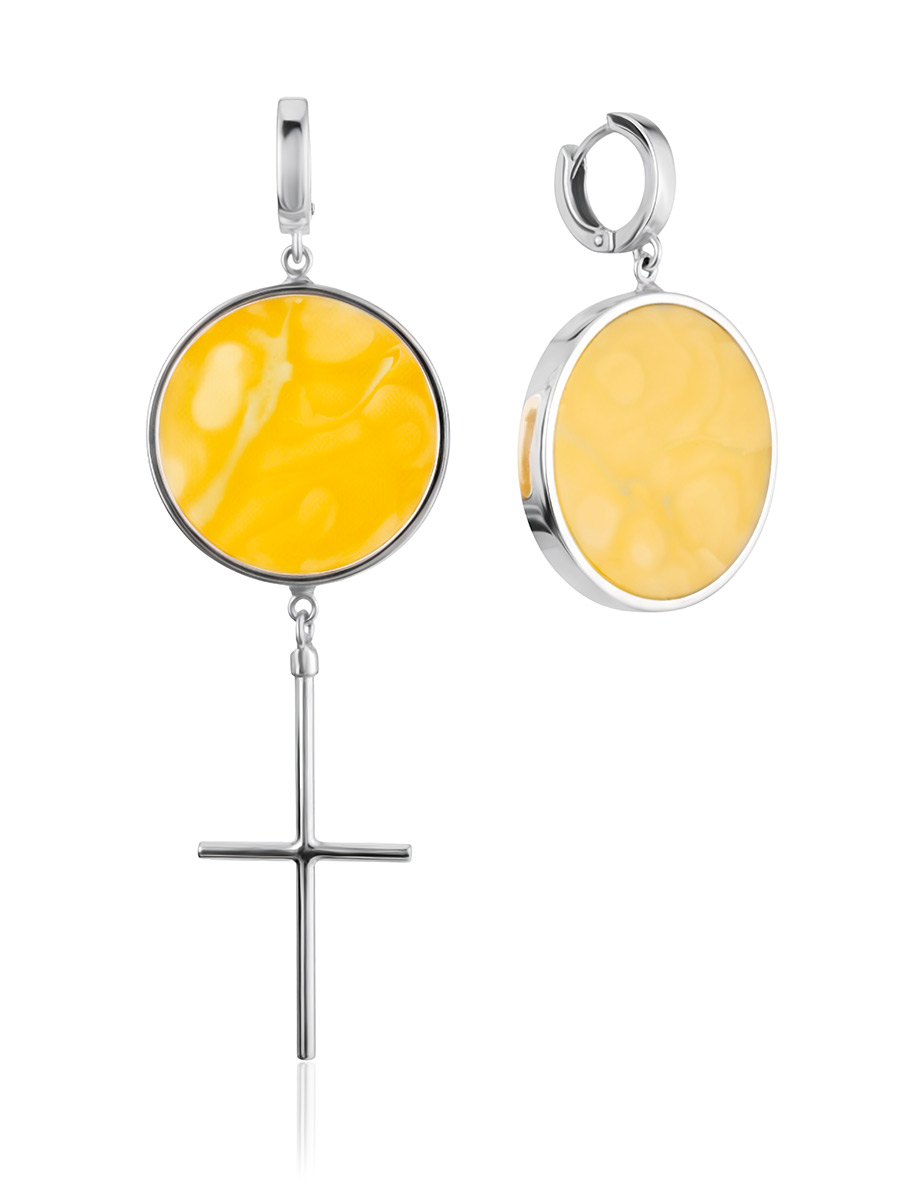 Роскошные объёмные асимметричные серьги Palazzo с янтарём