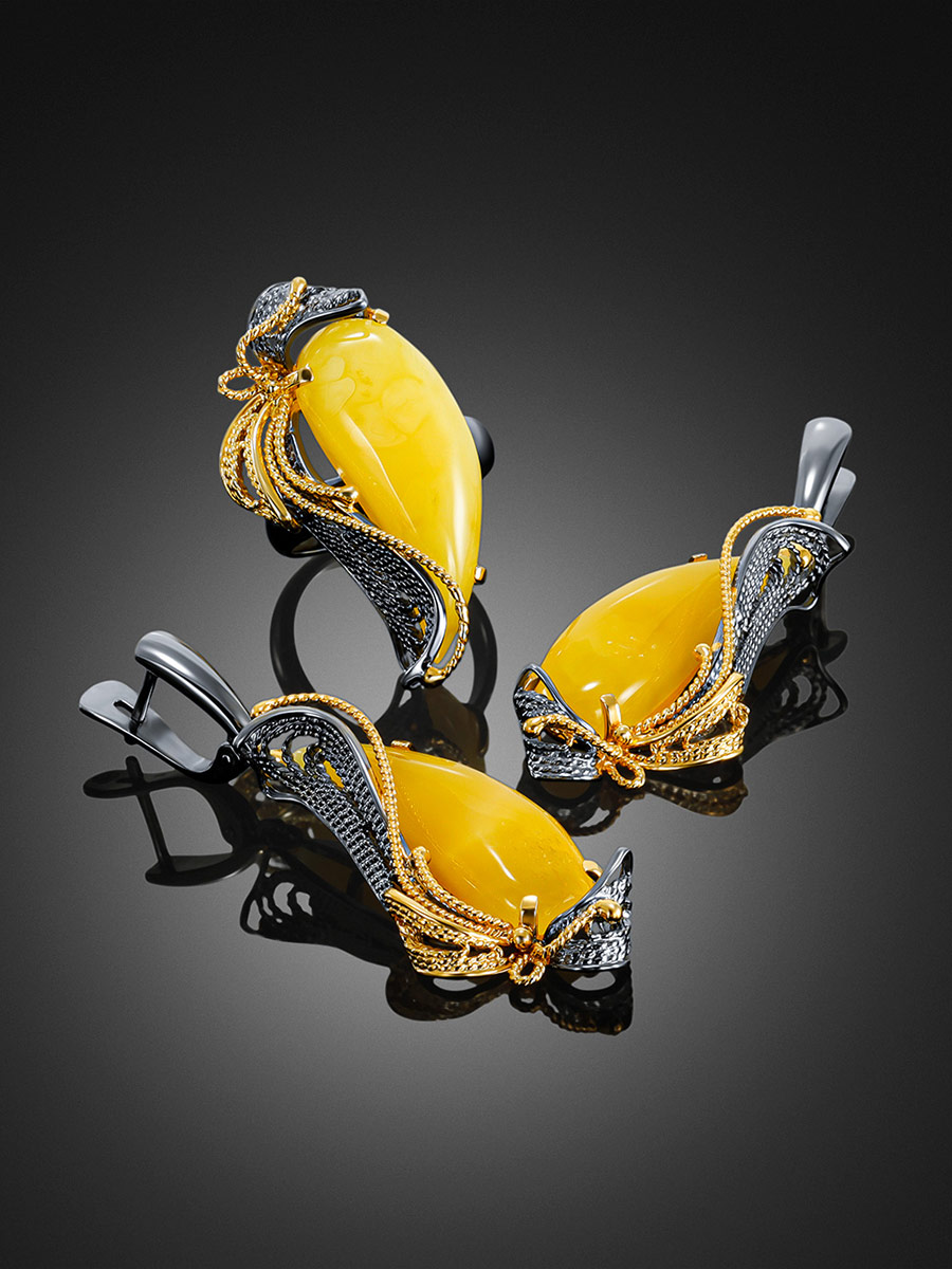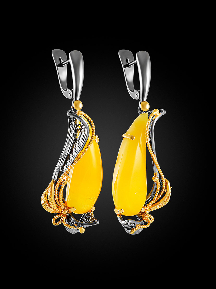 Роскошные серьги из натурального янтаря «Филигрань»