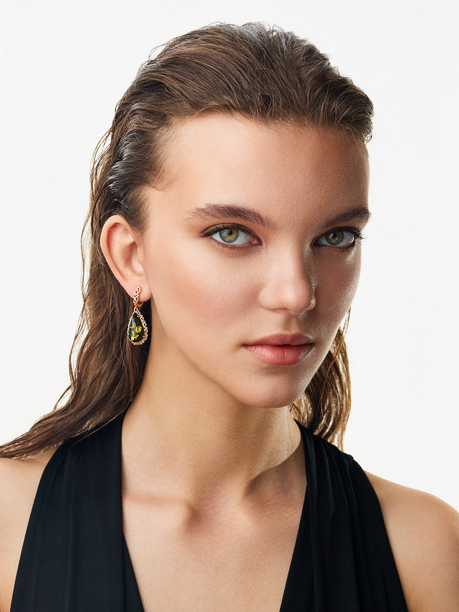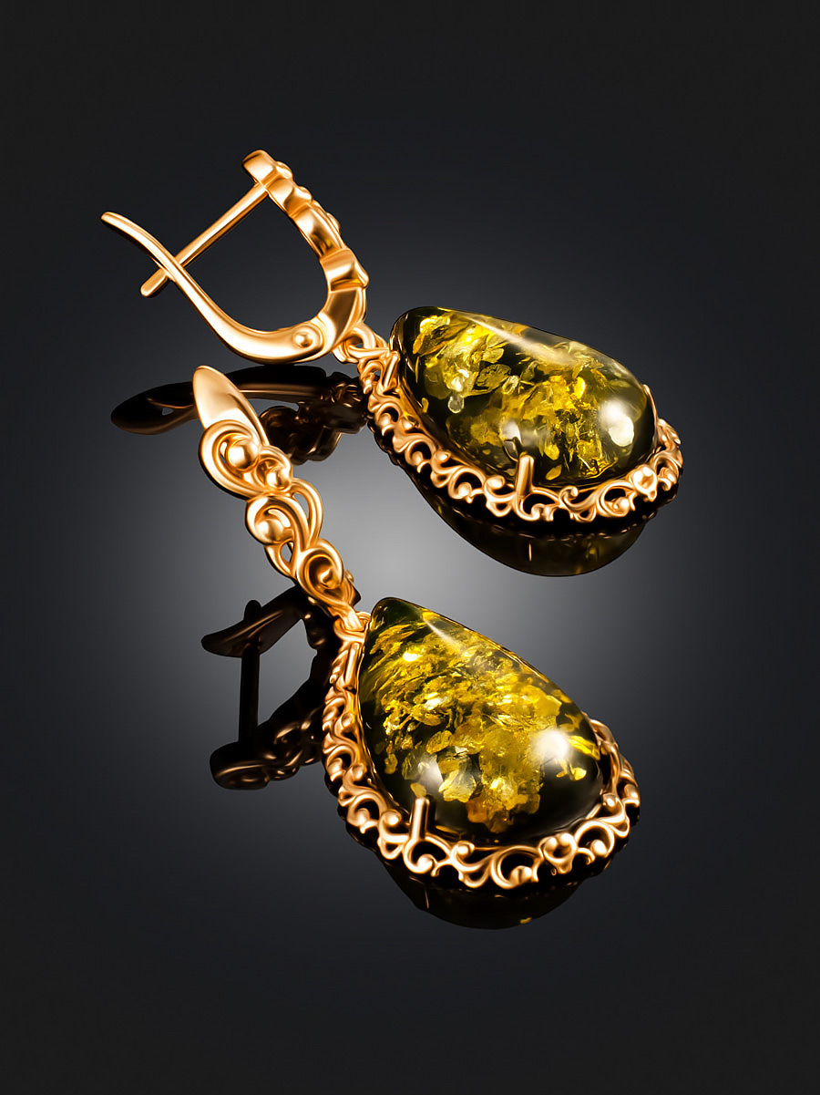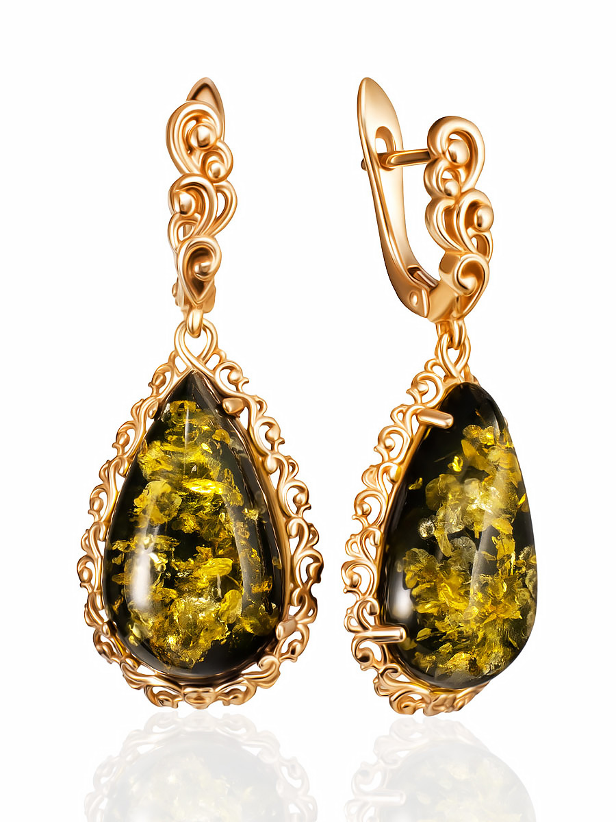 Роскошные серьги «Луксор» с искрящимся зелёным янтарём