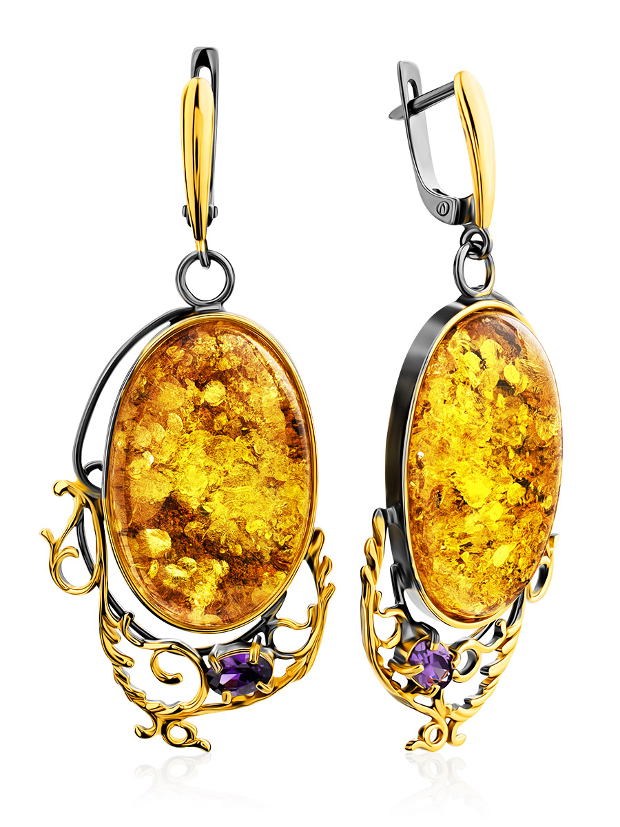 Роскошные вечерние серьги с натуральным текстурным янтарём «Версаль»
