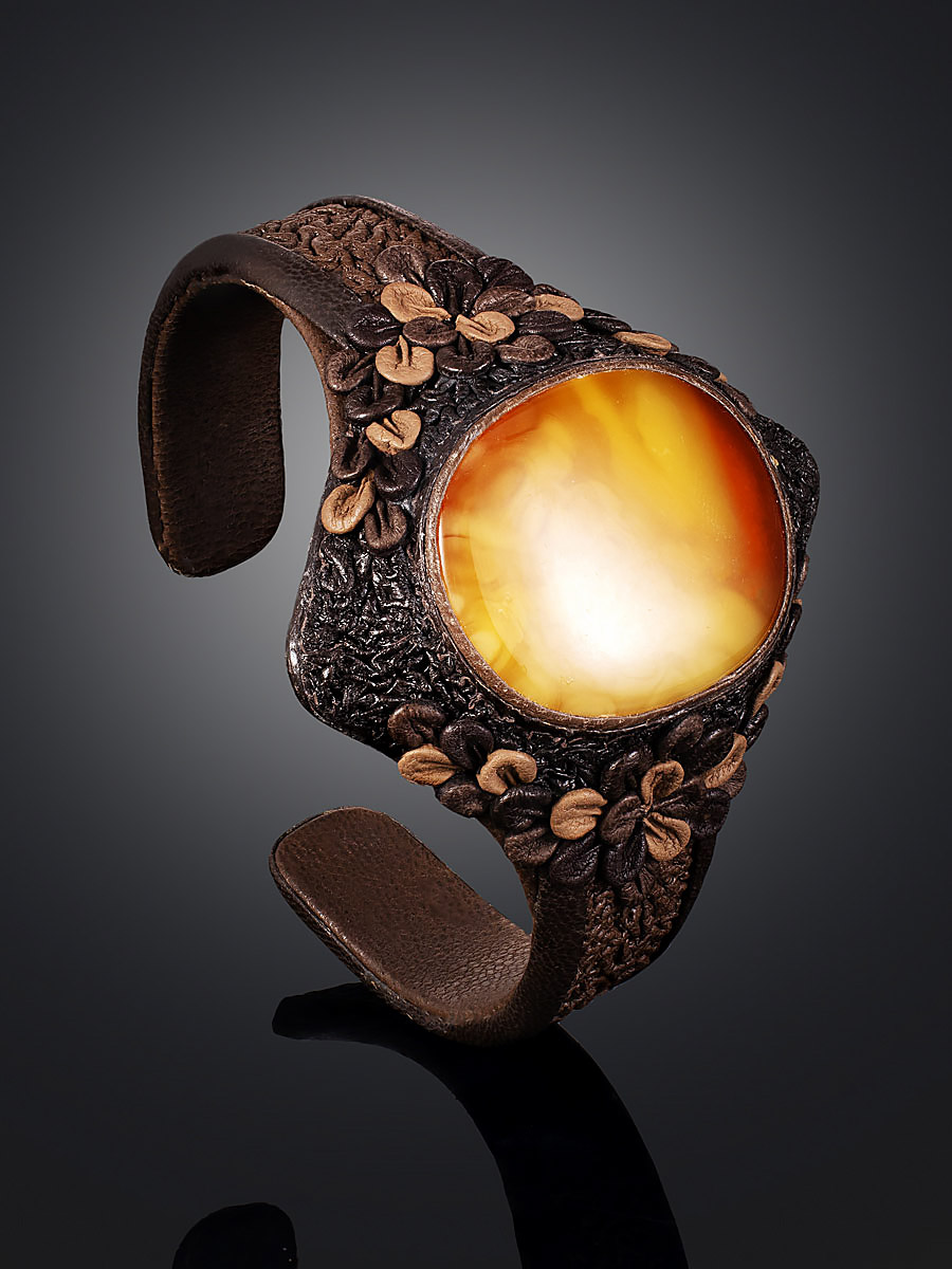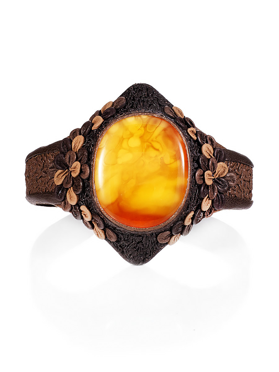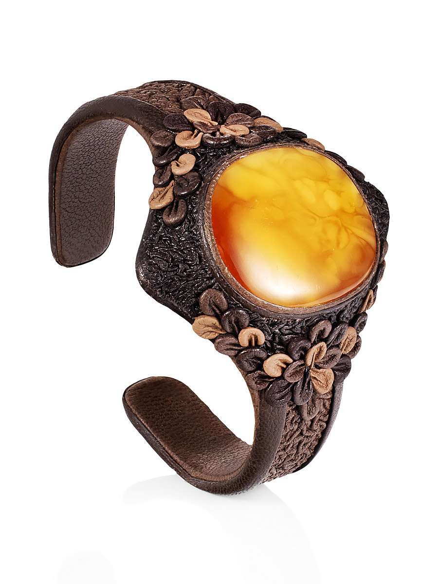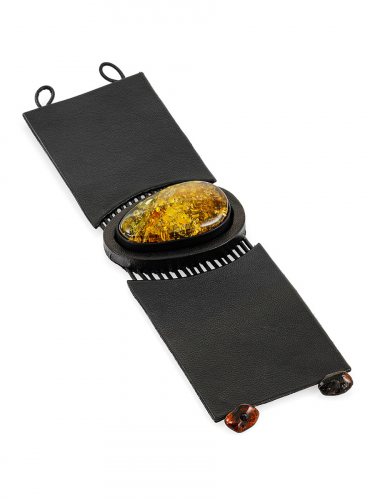 Роскошный браслет «Нефертити» из натуральной кожи с янтарём