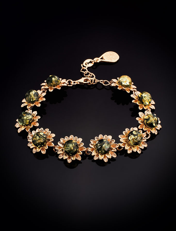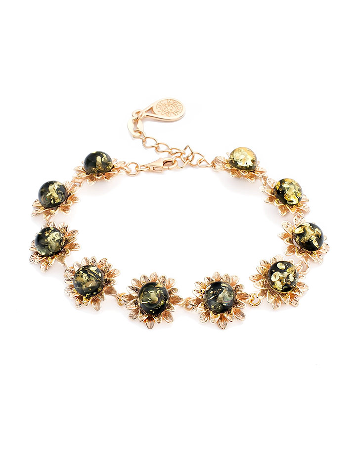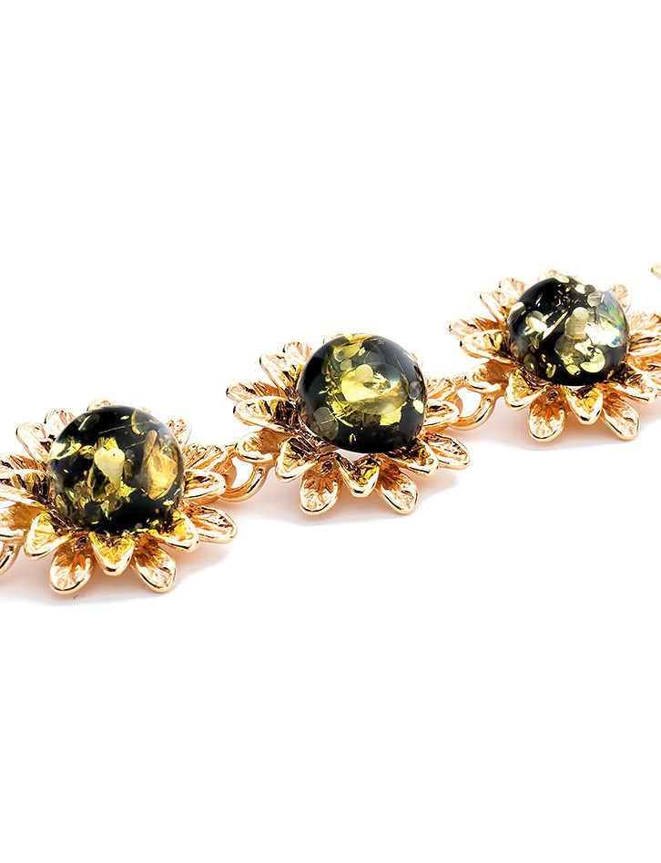 Роскошный браслет с цельным зелёным янтарём «Астра»