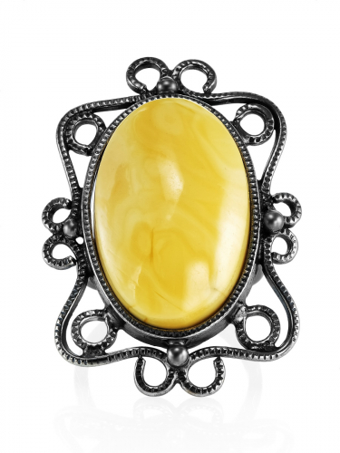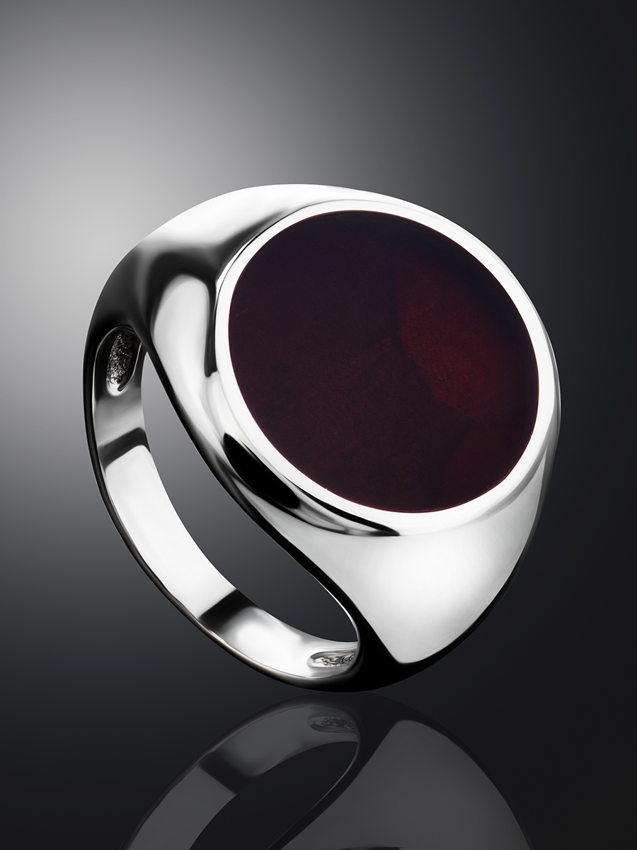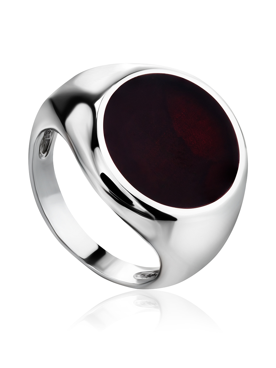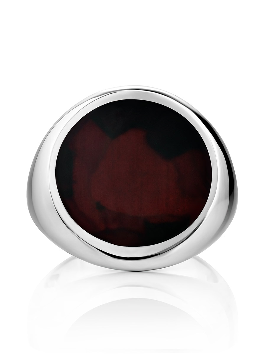 Роскошный мужской перстень «Монако» из янтаря тёмно-вишнёвого цвета