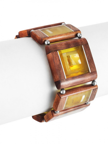 Роскошный объемный браслет из натурального состаренного янтаря тёмного оттенка