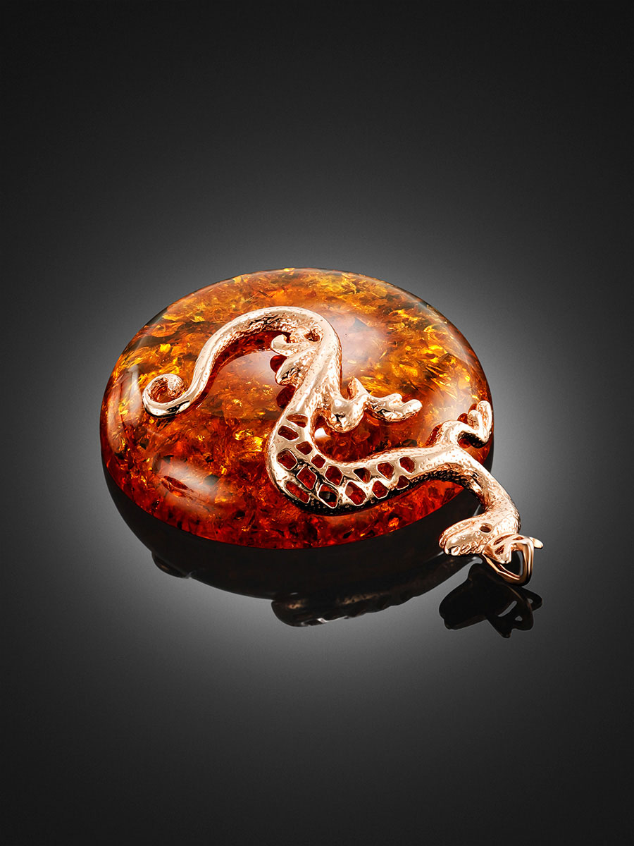 Роскошный объёмный кулон из балтийского янтаря «Хозяйка медной горы»