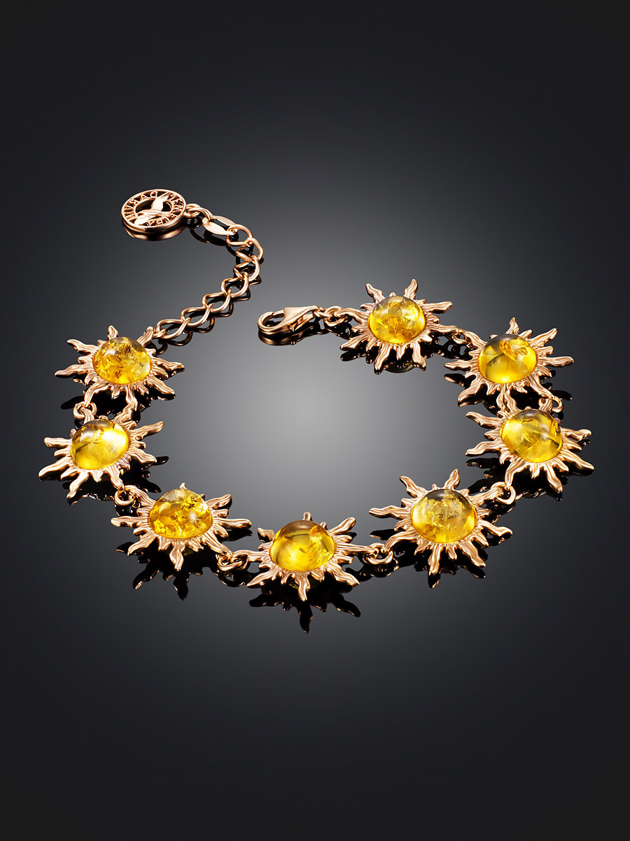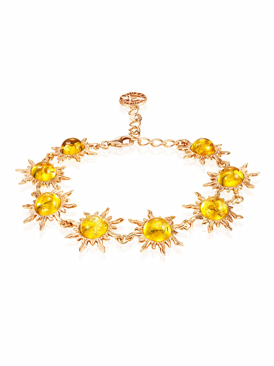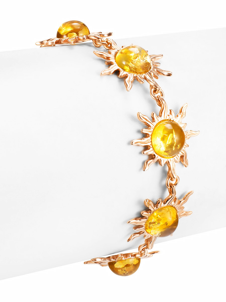 Роскошный позолоченный браслет «Гелиос» с лимонным янтарём