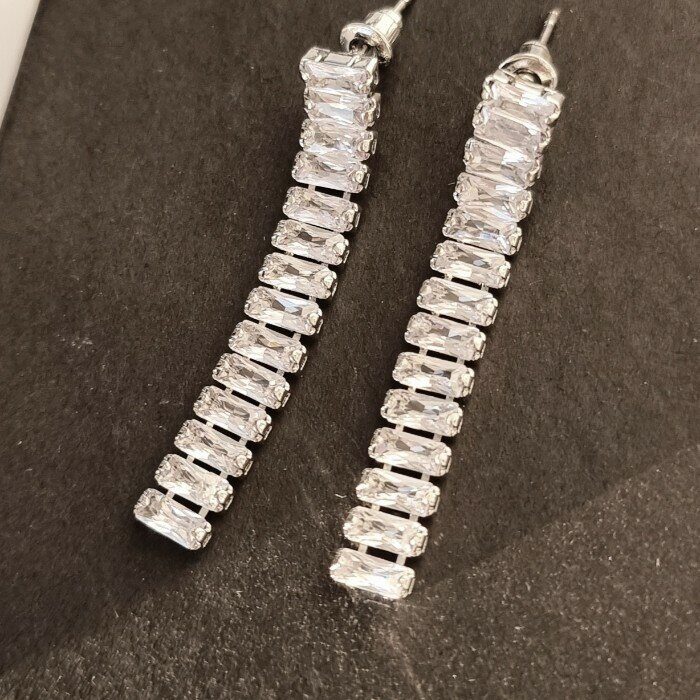 Серьги висячие, гвоздики, покрытие: посеребрение, цвет камня: прозрачный переливающийся, 032.511