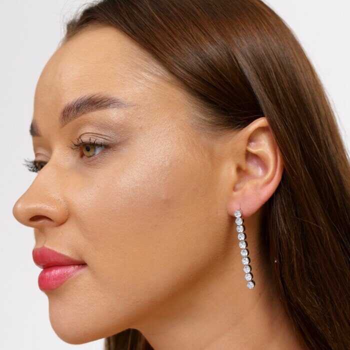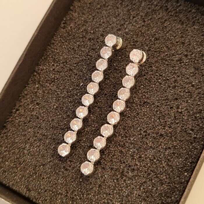 Серьги висячие, гвоздики, покрытие: посеребрение, цвет камня: прозрачный переливающийся, 032.513