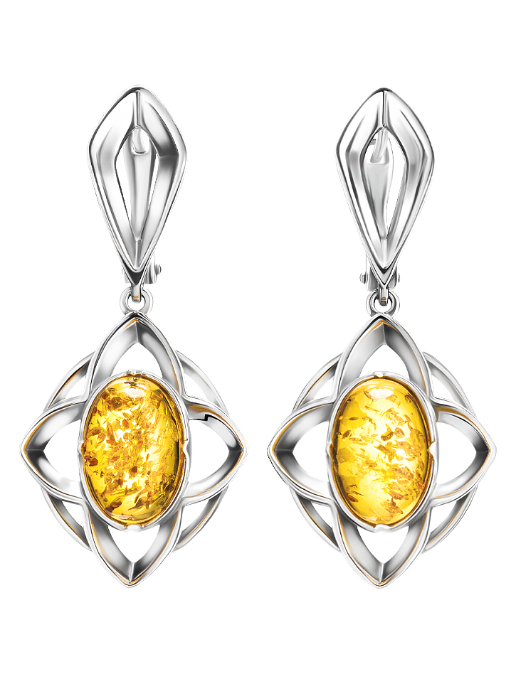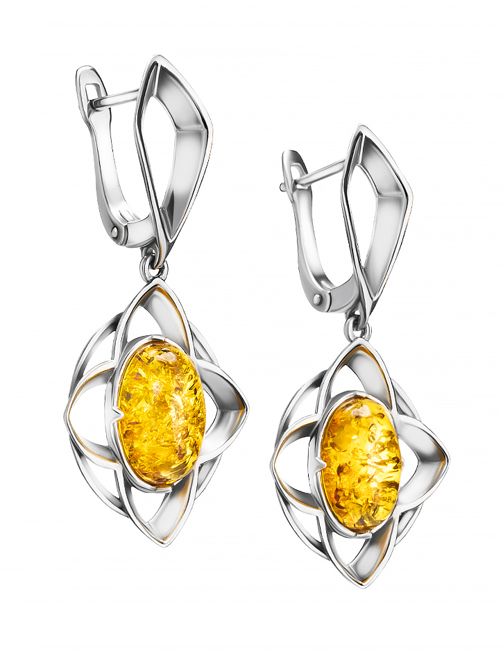 Серьги «Амьен» из натурального искрящегося янтаря золотистого цвета