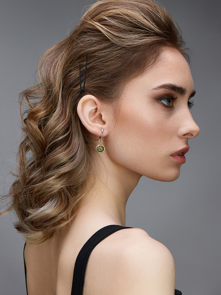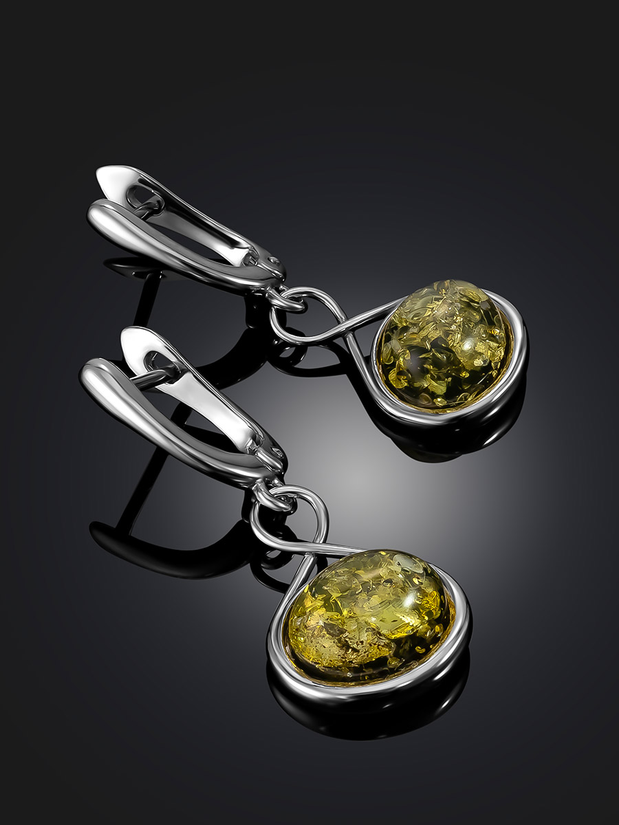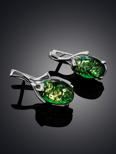 Серьги «Амиго» с искрящимся зелёным янтарём