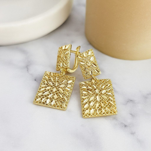 Серьги ажурные со стразами, висячие, цвет покрытия лимонная позолота, арт.313.225
