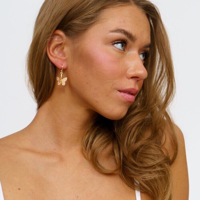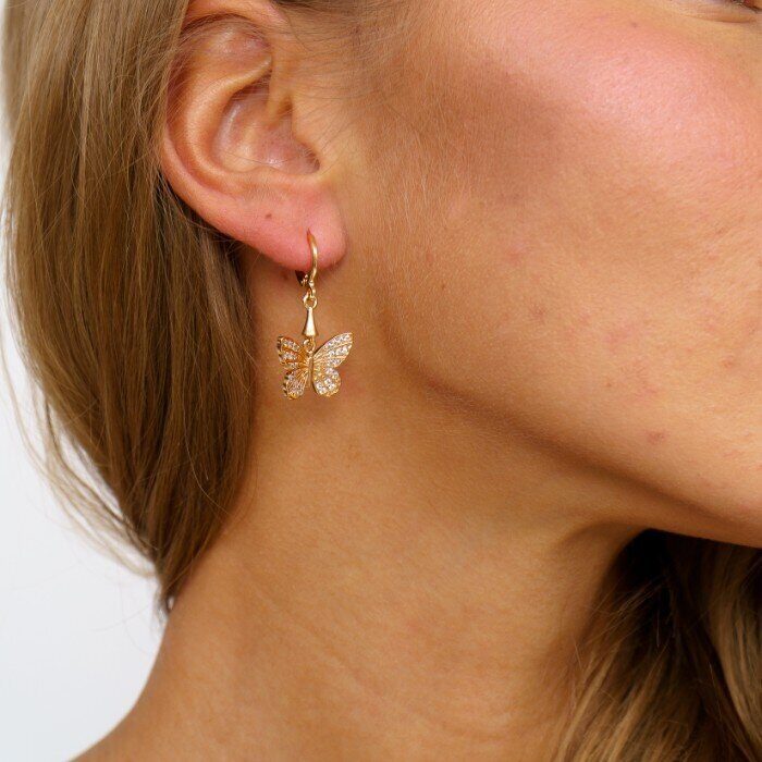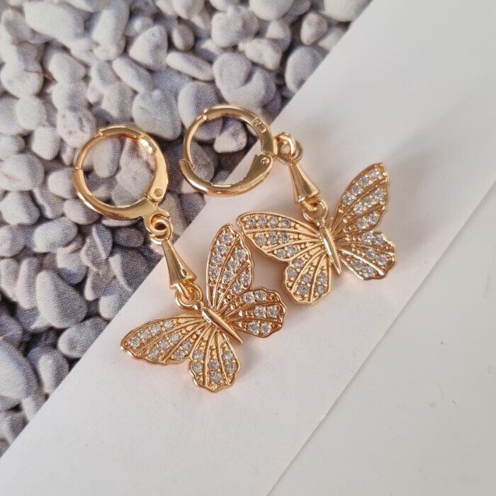 Серьги бабочки ювелирная бижутерия коллекция "Дубай" позолота, вставка фианиты, цвет: прозрачный,07520, арт.001.530