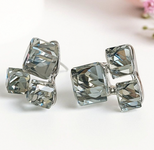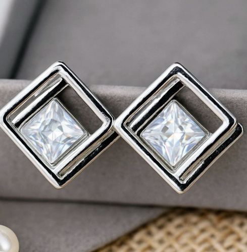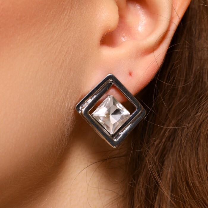Серьги бижутерия квадраты с крупным камнем, вставка: фианиты, цвет: прозрачный, арт.101.273