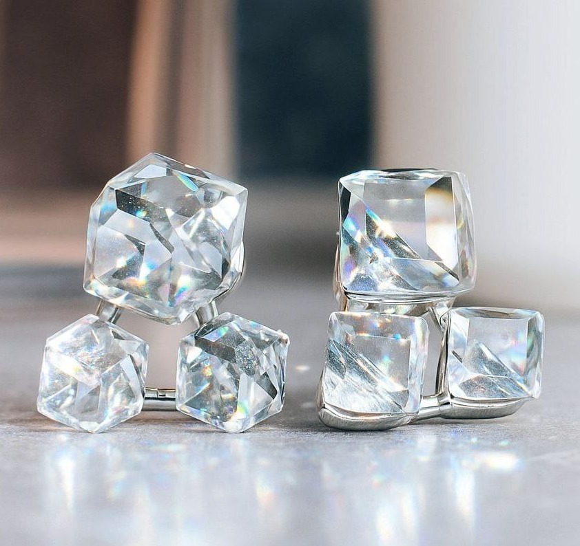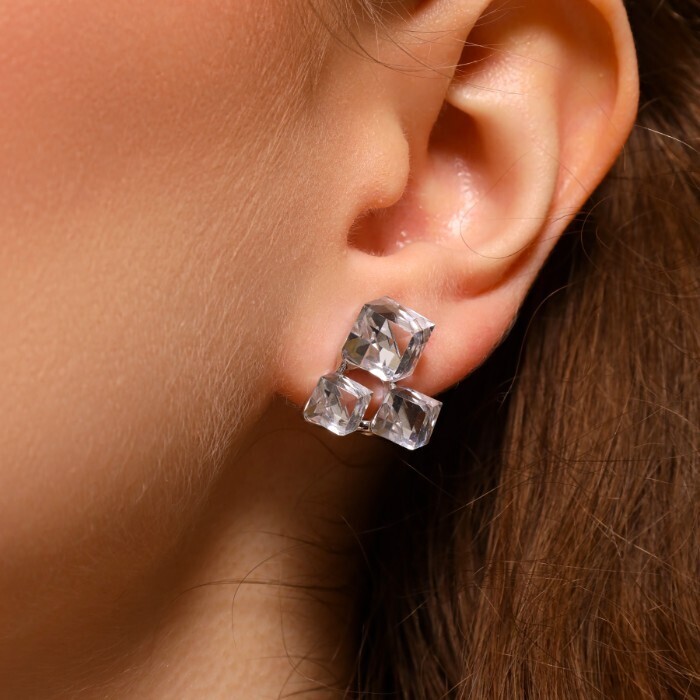 Серьги бижутерия квадраты с крупными камнями, цвет: прозрачный, арт.101.277
