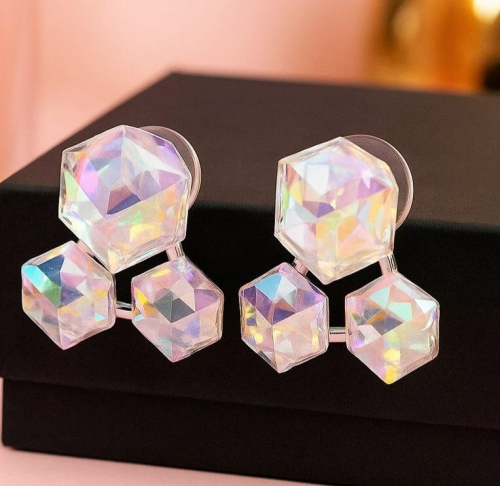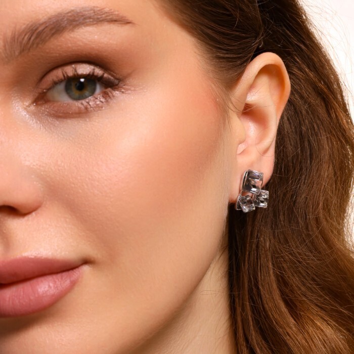 Серьги бижутерия квадраты с крупными камнями, цвет: серый, арт.101.275