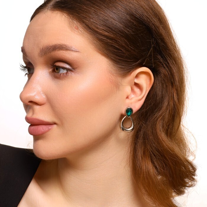 Серьги бижутерия с камнем, вставка: фианиты, цвет: зеленый, арт.101.266