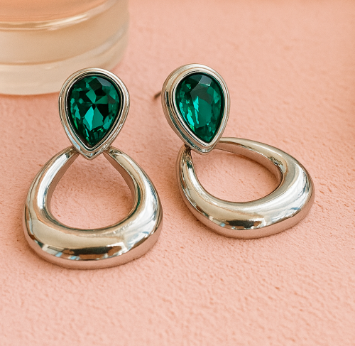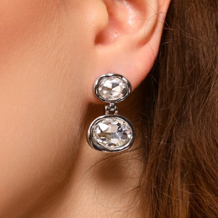 Серьги бижутерия с крупным камнем, вставка: фианиты, цвет: прозрачный, арт.101.267