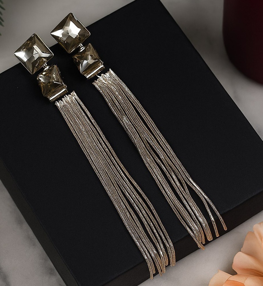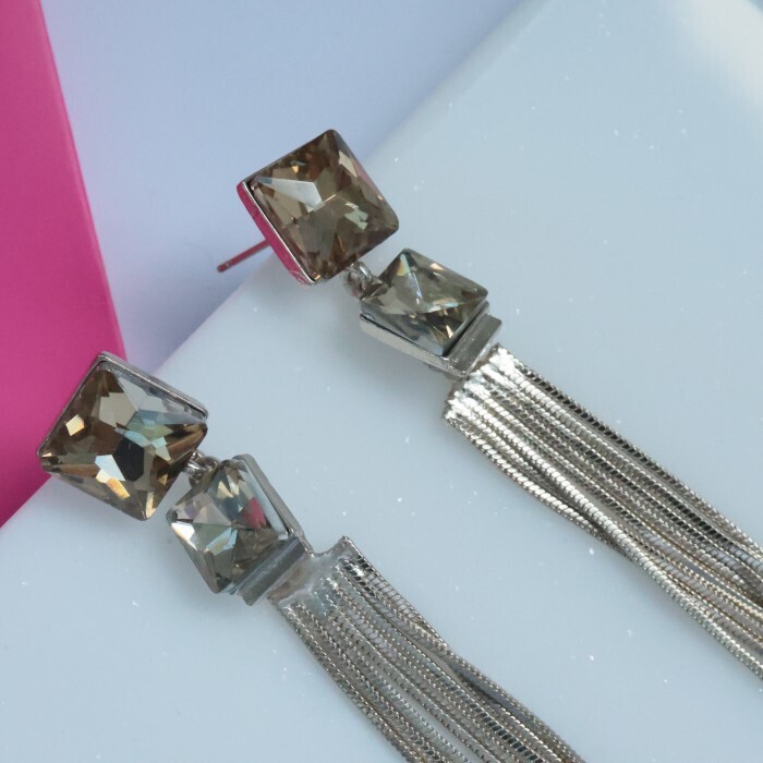 Серьги бижутерия висячие цепочки с крупным камнем, вставка: фианиты, цвет: шампань, арт.101.261
