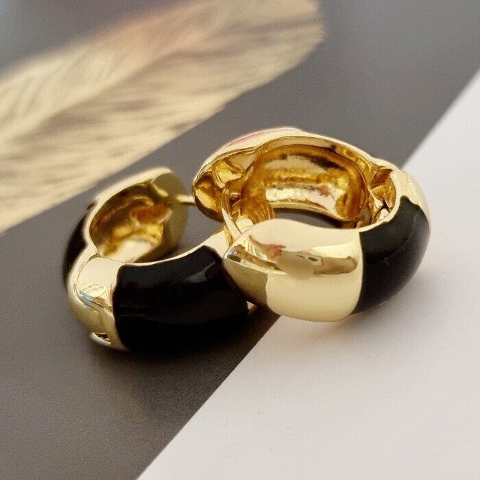 Серьги бублики, цвет золотистый и черный, 05025, арт.001.507