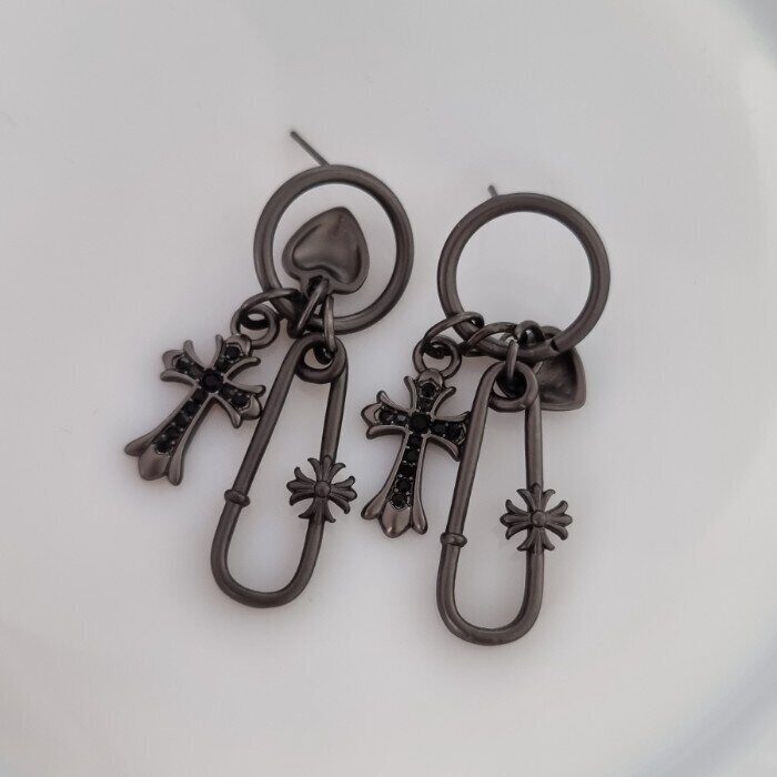 Серьги булавки с крестом, цвет: черный, вставка: стразы черный, арт.001.790