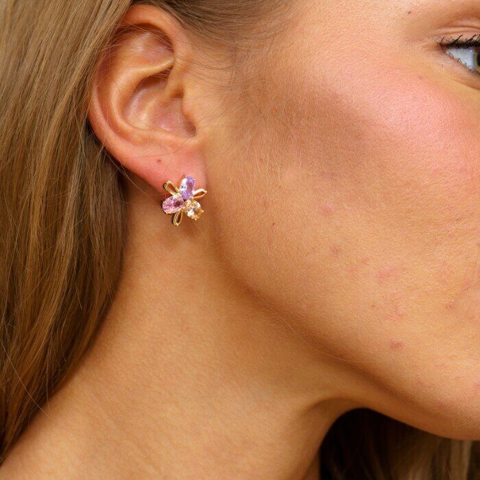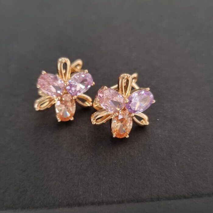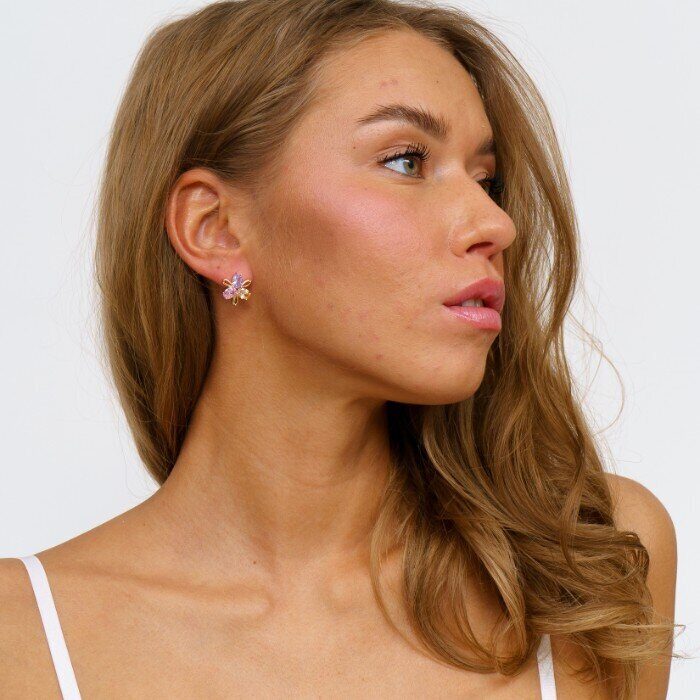 Серьги цветок ювелирная бижутерия коллекция "Дубай" позолота, камень: сиреневый, розовый,07520, арт.001.525