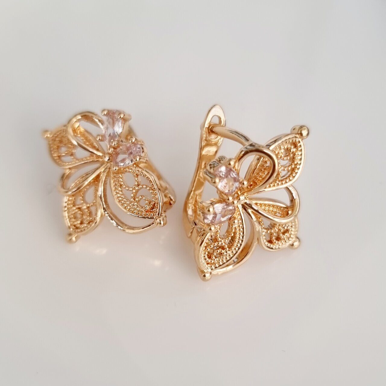 Серьги цветы коллекция "Дубай" покрытие позолота, вставка: фианиты, 5, арт.217.045