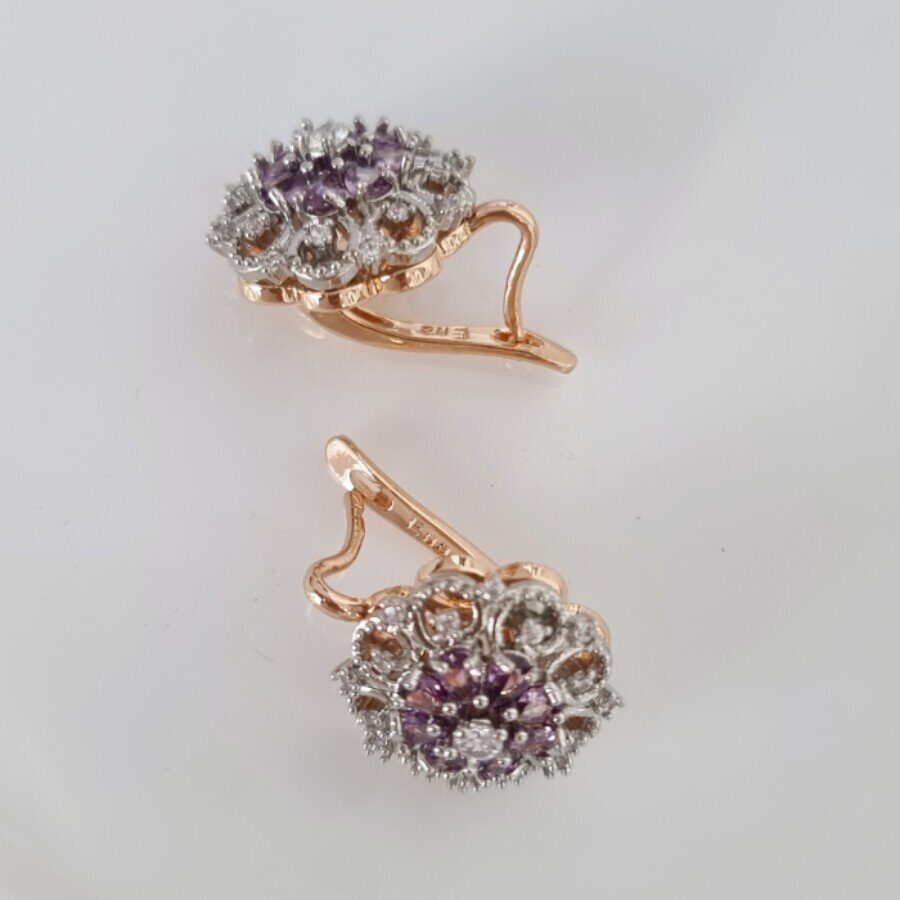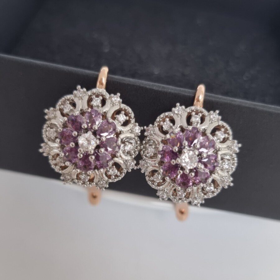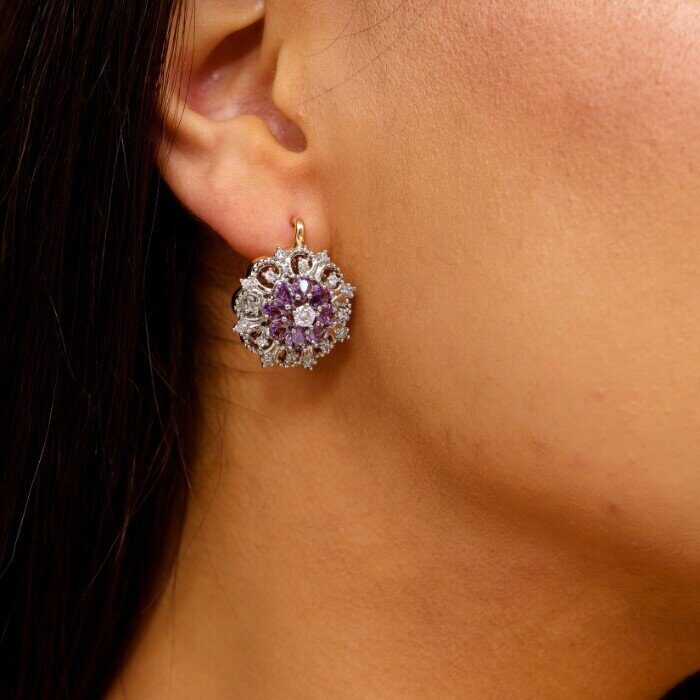 Серьги цветы ювелирная бижутерия коллекция "Дубай" покрытие: позолота, цвет камня: прозрачный и сиреневый, арт.214.445