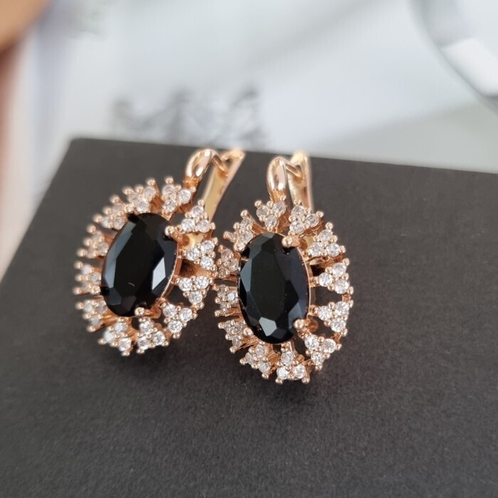 Серьги цветы ювелирная бижутерия коллекция "Дубай" покрытие: позолота, вставка: фианит, цвет: черный и прозрачный, арт.214.844
