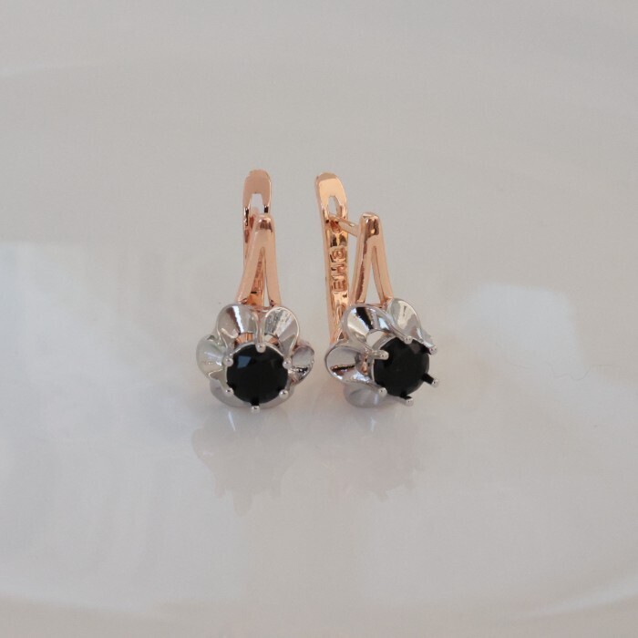 Серьги цветы ювелирная бижутерия коллекция "Дубай" покрытие позолота, вставка: фианиты, цвет: черный, арт.314.251