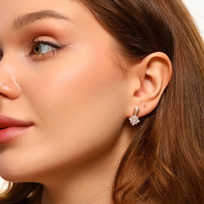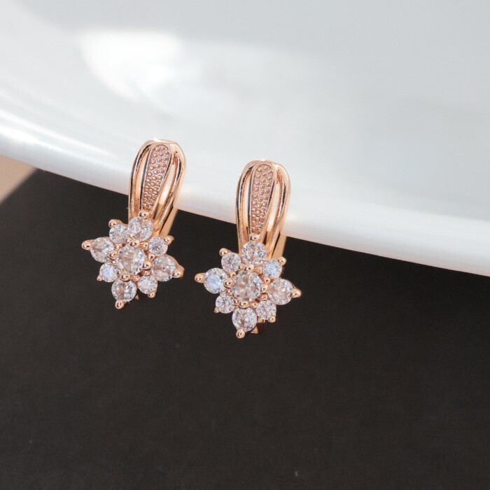 Серьги цветы ювелирная бижутерия коллекция "Дубай", покрытие позолота, вставка: фианиты, цвет: прозрачный, арт.213.563