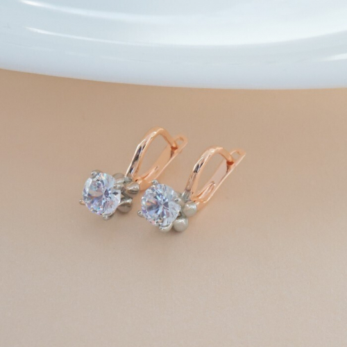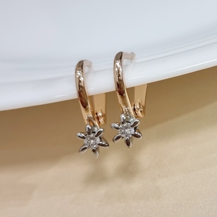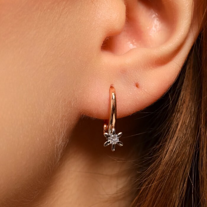 Серьги цветы ювелирная бижутерия коллекция "Дубай", покрытие позолота, вставка: фианиты, цвет: прозрачный, арт.213.584