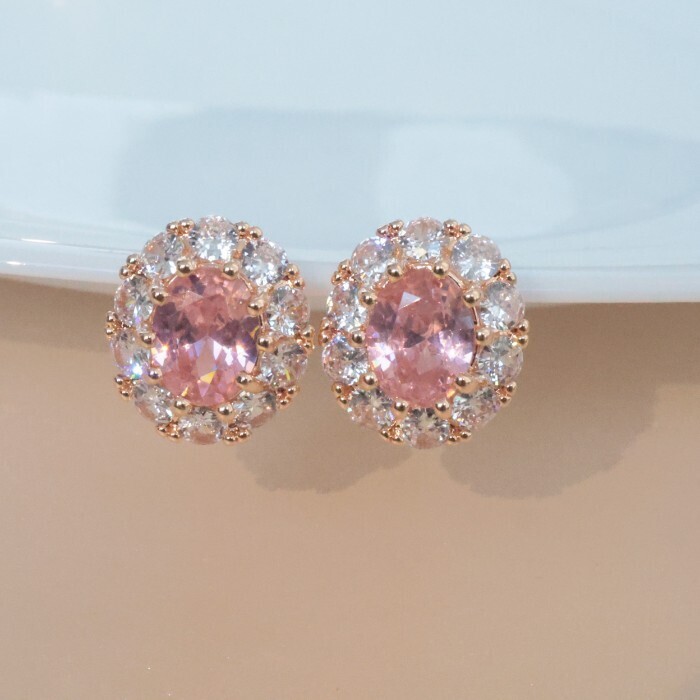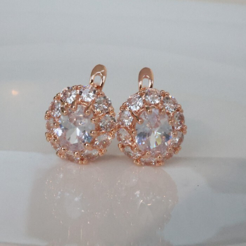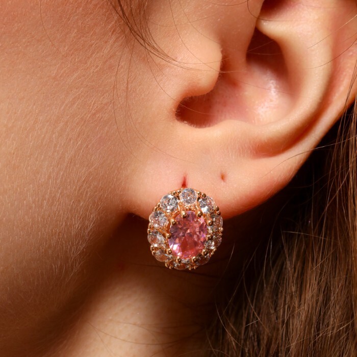 Серьги цветы ювелирная бижутерия коллекция "Дубай", покрытие позолота, вставка: фианиты: цвет: прозрачный и розовый, арт.213.644