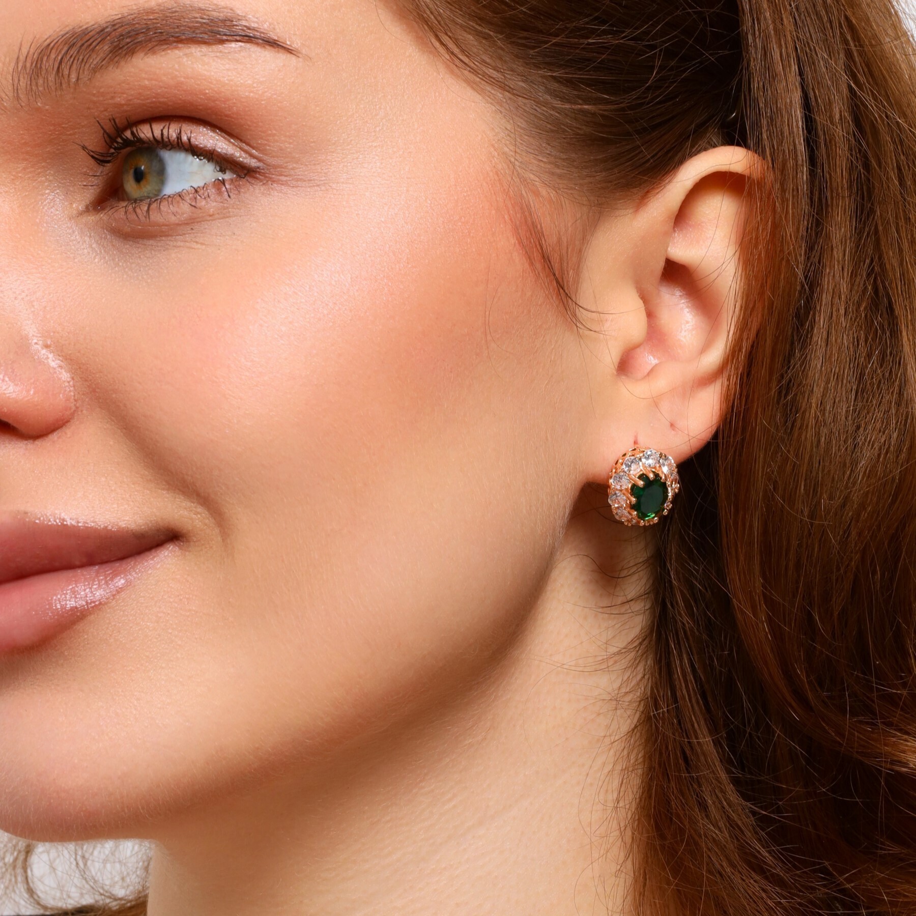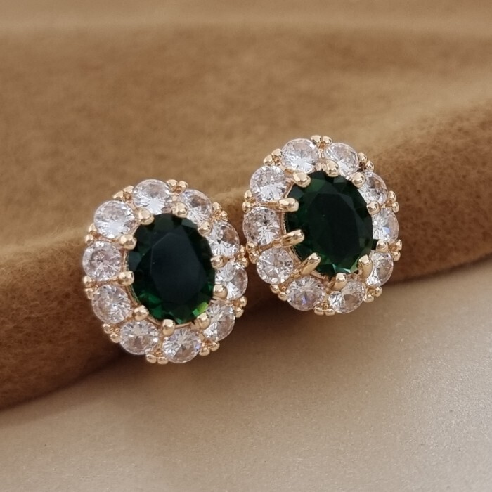 Серьги цветы ювелирная бижутерия коллекция "Дубай", покрытие позолота, вставка: фианиты: цвет: прозрачный и зеленый, арт.213.643