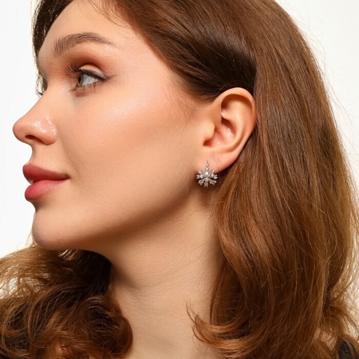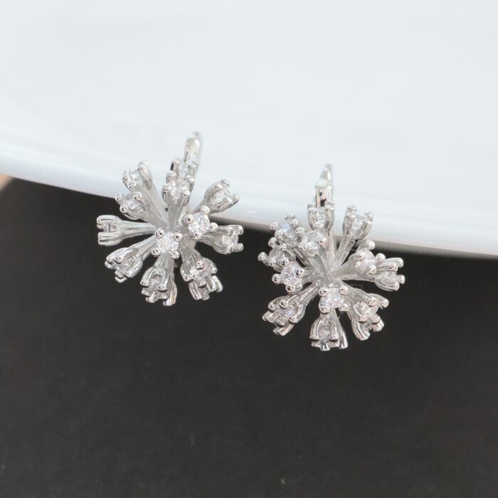 Серьги цветы ювелирная бижутерия покрытие посеребрение, вставка: фианиты, цвет: прозрачный, арт.213.557